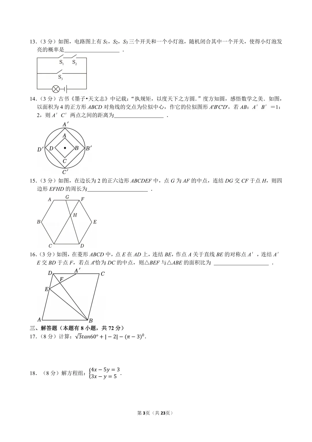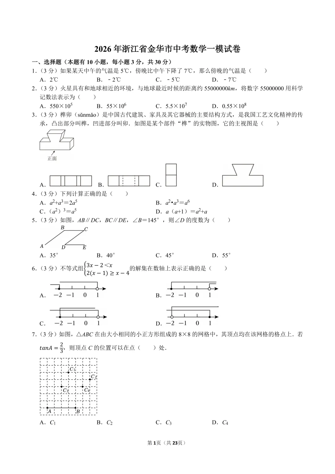 2026年浙江省金华市中考数学一模试卷.pdf