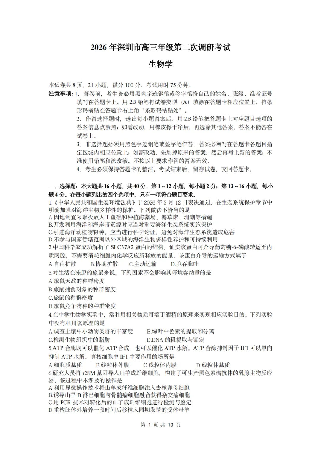 【模考试卷领取】2026年4月石家庄高三二模数学/物理/英语/化学