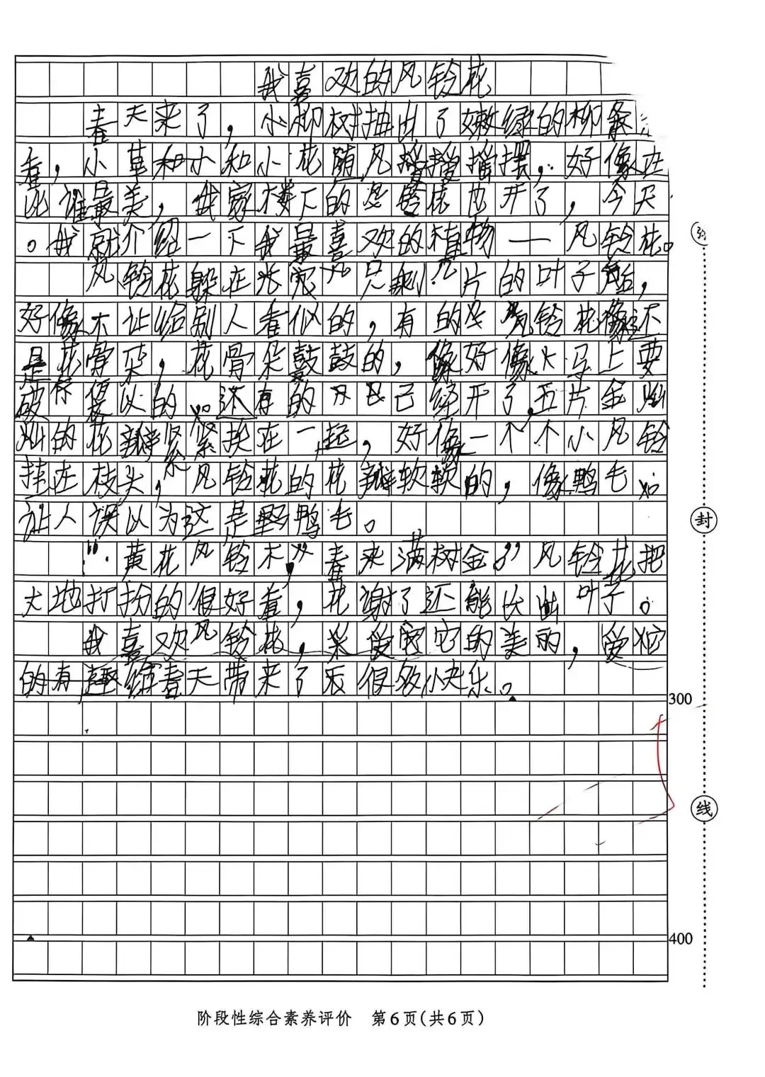 试卷发回来,看到孩子写的这样的一篇作文,我不但没有骂他,也没有批评他,更没有对他提出建议:再写多一句就好!而是,我对他竖起了大拇指,对他大加赞赏,表扬他真的很棒!是的,孩子已经读三年级了,这是三年级下册第一单元孩子在测验中写的作文,如果从老师的角度来评价,可能会有以下几个缺点:①字迹潦草,书写不工整,有多处涂改痕迹,版面不美观。但是,孩子一放学,他并没有将试卷放进书包,而是一手拽着刚发回来的试卷,一路狂奔。回到家,立刻把手中的试卷拍在饭桌上,“试卷,签字!”我还没有反应过来,正准备放下手中的碗筷。孩子,又来一句:“爸,签字”。我心想:以前考试的语文卷子,从来没有主动拿出来叫签字,怎么今天那么“神气”?我慢悠悠地拿起试卷,翻到后面一看,此时此刻,我大吃一惊!扣5分!我再看一遍,没错是扣5!满分30分的作文,这次只扣5分呀!这小子可以啊!我马上竖起大拇指,你作文获得了重大的突破,真棒啊!奖10块钱。孩子拿过奖励,高兴得又蹦又跳,饭都没吃,"嗖一一”的一声跑出去买最爱吃的零食去了。我激动得快要掉下眼泪!这一次测验,是孩子三年级以来,在考试中作文写得最好的一次,以前基本上都是扣12分,扣15分。每次都没有办法在考试中完成作文,超水平发挥时,也就写250字。写字慢,思考慢,部分字不会写。以前字写得还算工整,练过书法,但写起来特慢,老师叫起卷都没有写完。每次考完语文,心情就不好!因为老师会批评,“不读熟范文,平时不努力”之类!孩子对作文越来越抗拒,总觉得天生笨,再怎么努力也写不完,写不好。于是,寒假,我就陪孩子一起做了一件事:提前买好下册课本,带着课本出去玩,假期不再上书法兴趣班。 为什么?写字不是老师对考生作文的第一印象吗?为什么要舍去?孩子一直对写字都有要求,一横一竖怎么写,要写得好!追求完美!但是这个习惯却不知不觉中伤害着他,写字慢,作文写不完,从此对作文充满了恐惧。于是,我对他说,字可以写丑一点,速度要写快一些,不要太在意句子是否通顺,先根据你的写作思路,写够字数再说。在考试,期中前的单元的作文都有练过,但是都没有办法在30分中内独立完成一篇作文。但这次考试,他尽全力勉强做到了!我知道,可能别的孩子,轻轻松松就可以达到这水平,而他,已经拼尽全力了!
