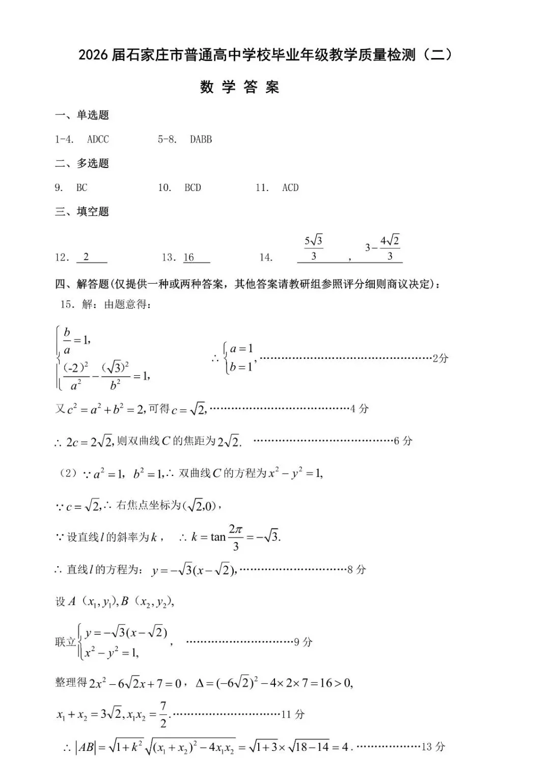 【模考试卷领取】2026年4月石家庄高三二模数学/物理/英语/化学