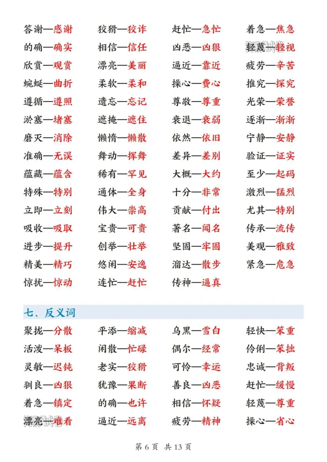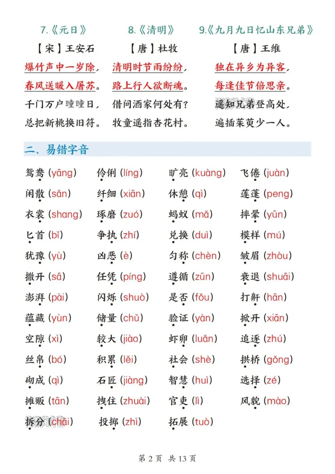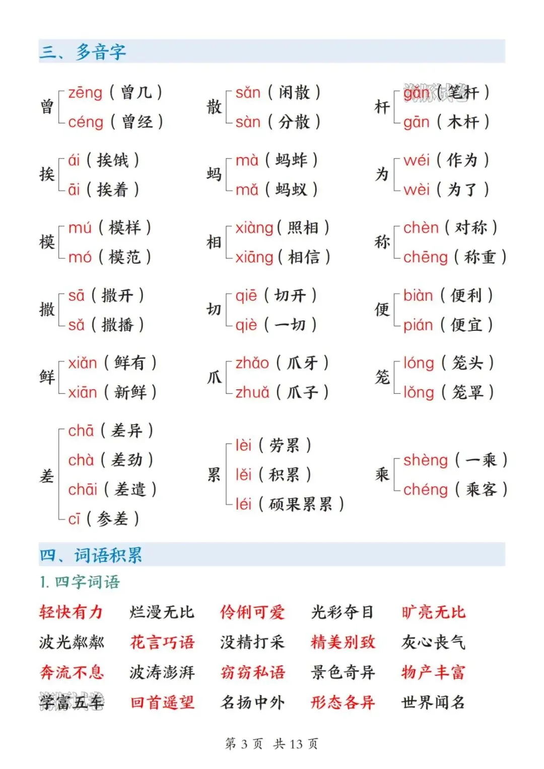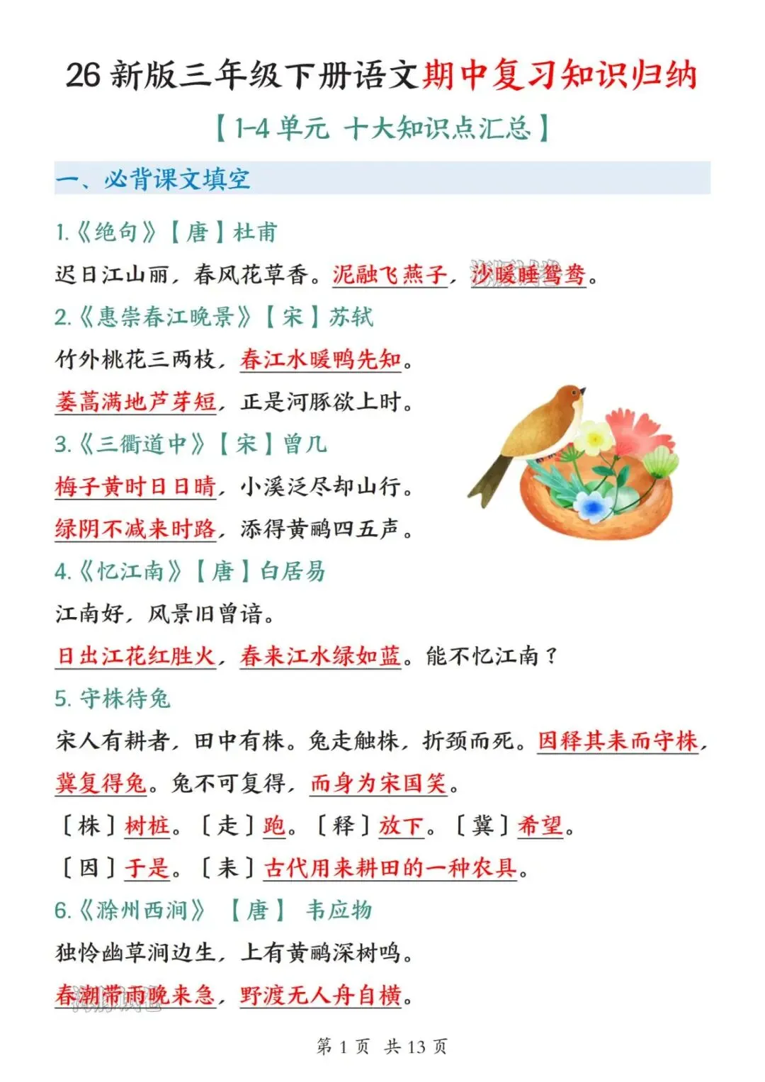 【海豚试卷】26新三年级(下)语文期中复习知识归纳(高清可下载)