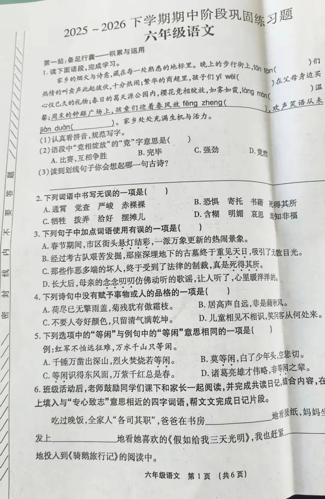 3. 字词、古诗文考查不再是单一机械默写,融入语境化填空、场景化运用,既考背诵记忆,更考理解掌握,让基础考查更有实际意义。