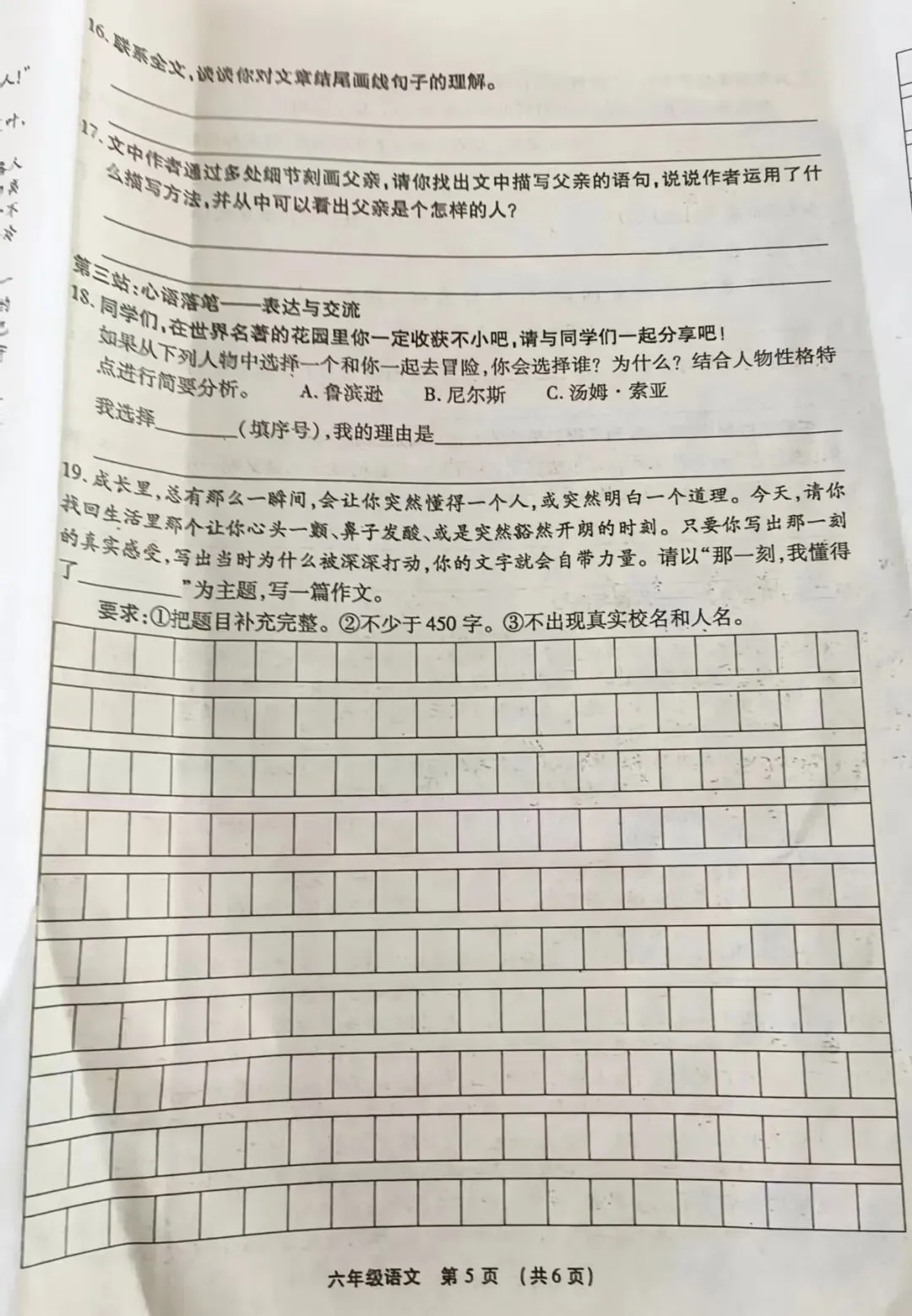 3. 习作命题贴合六年级学生生活实际,成长类半命题作文开放度高、选材范围广,既方便普通学生有话可写,又给优秀学生留有立意拔高、细节出彩的发挥空间,能真实检测学生的习作综合水平。