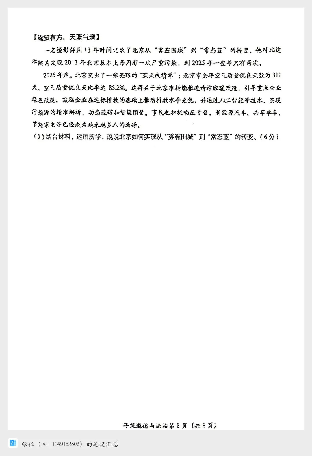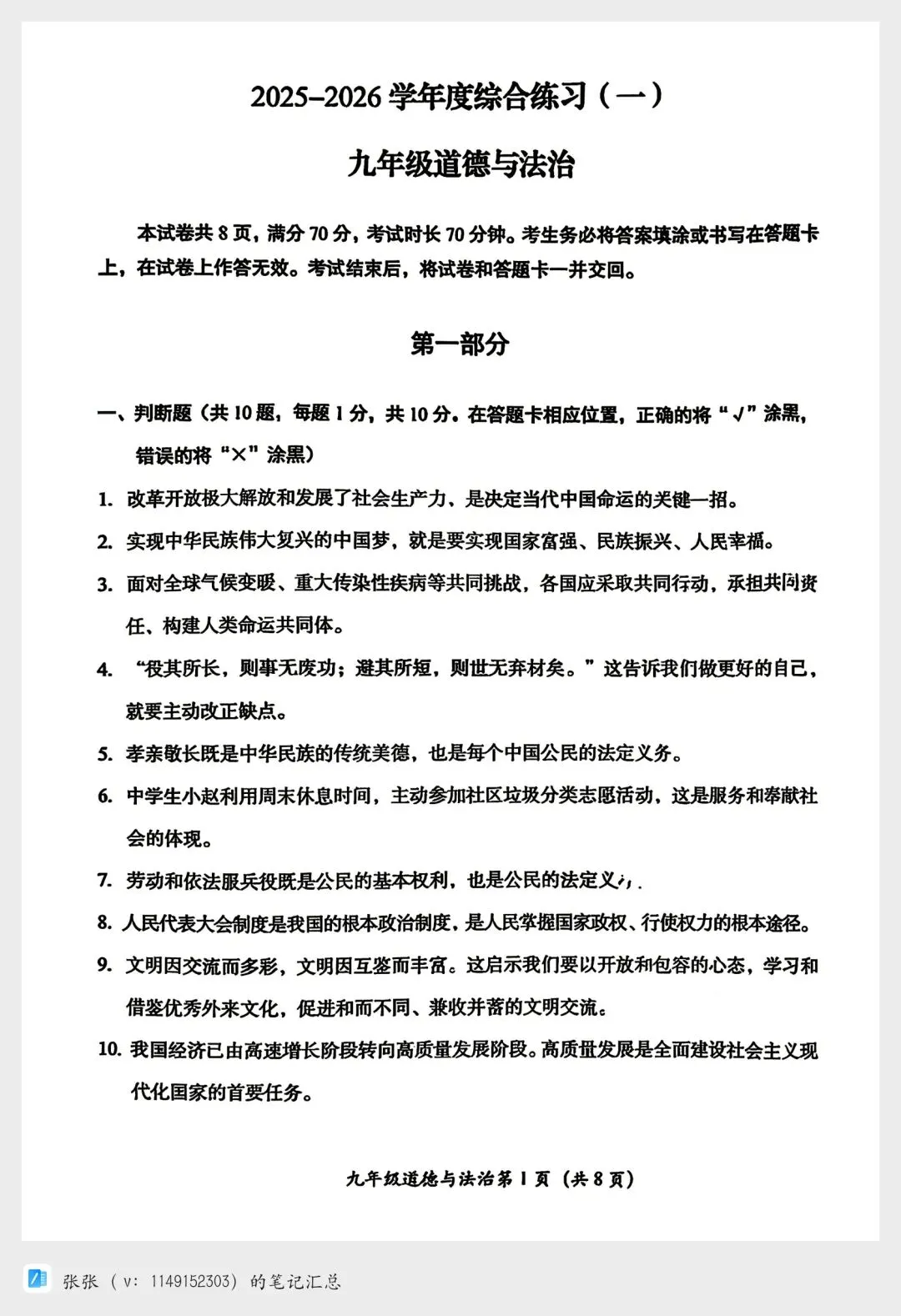 >【2026北京房山一模道法试卷+答案】陆续更新其他区哦!