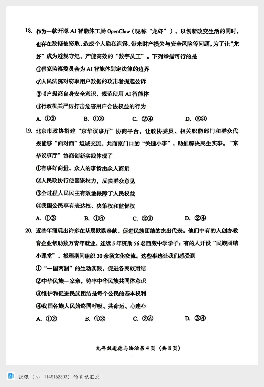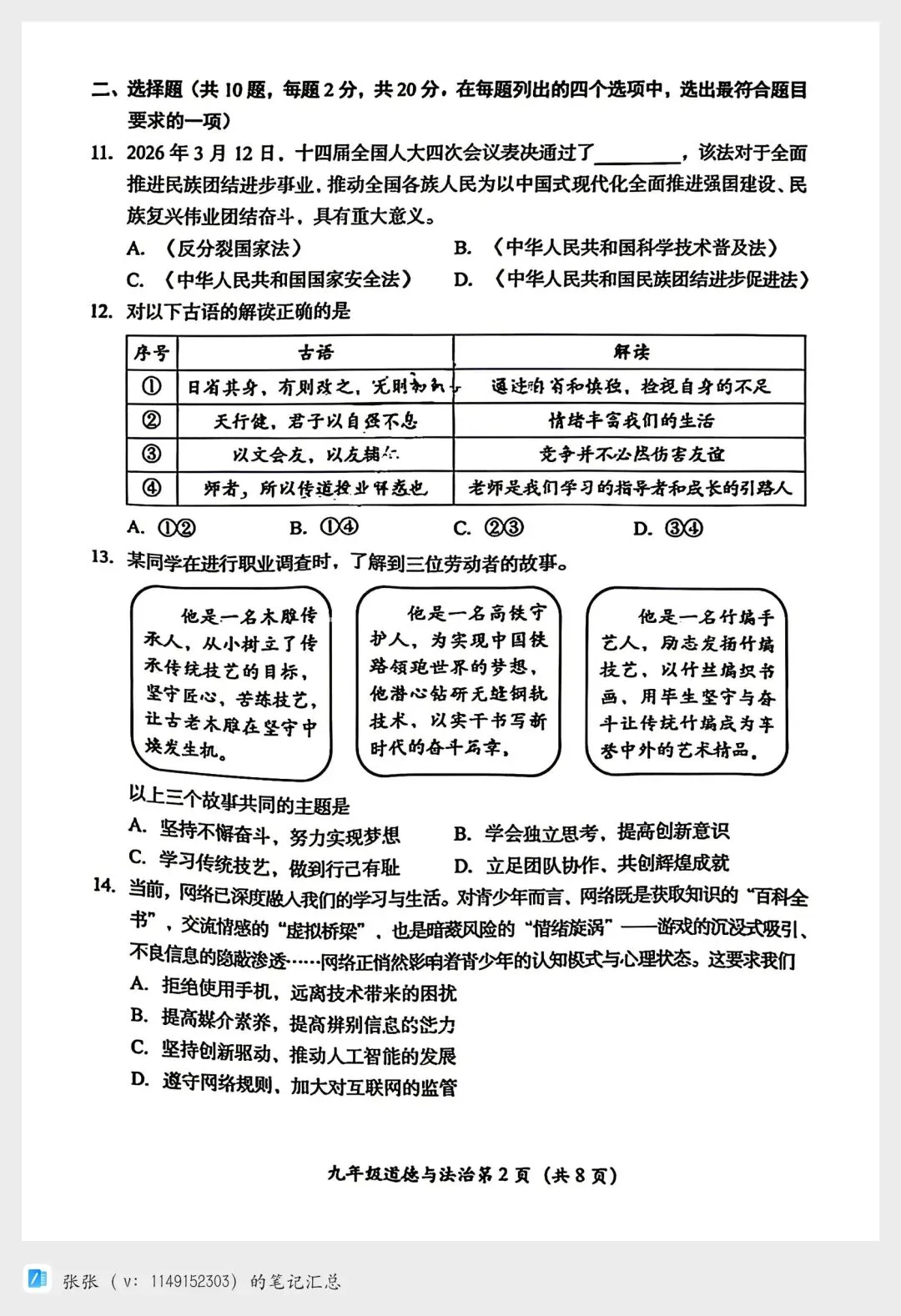【2026北京房山一模道法试卷+答案】陆续更新其他区哦!