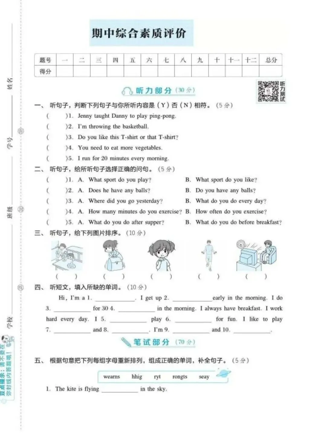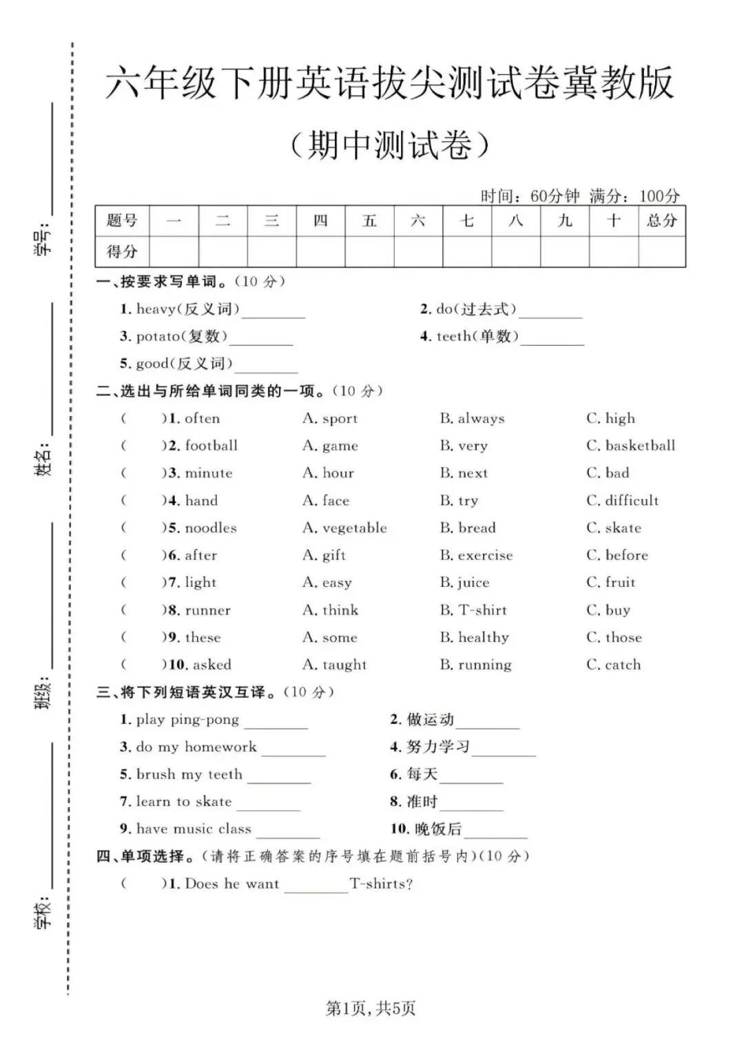 2026春最新版!小学英语(冀教版)六年级下册《期中试卷》2套,基础、拔尖各1套,含听力、答案。文末免费下载,可选择性打印练习。
