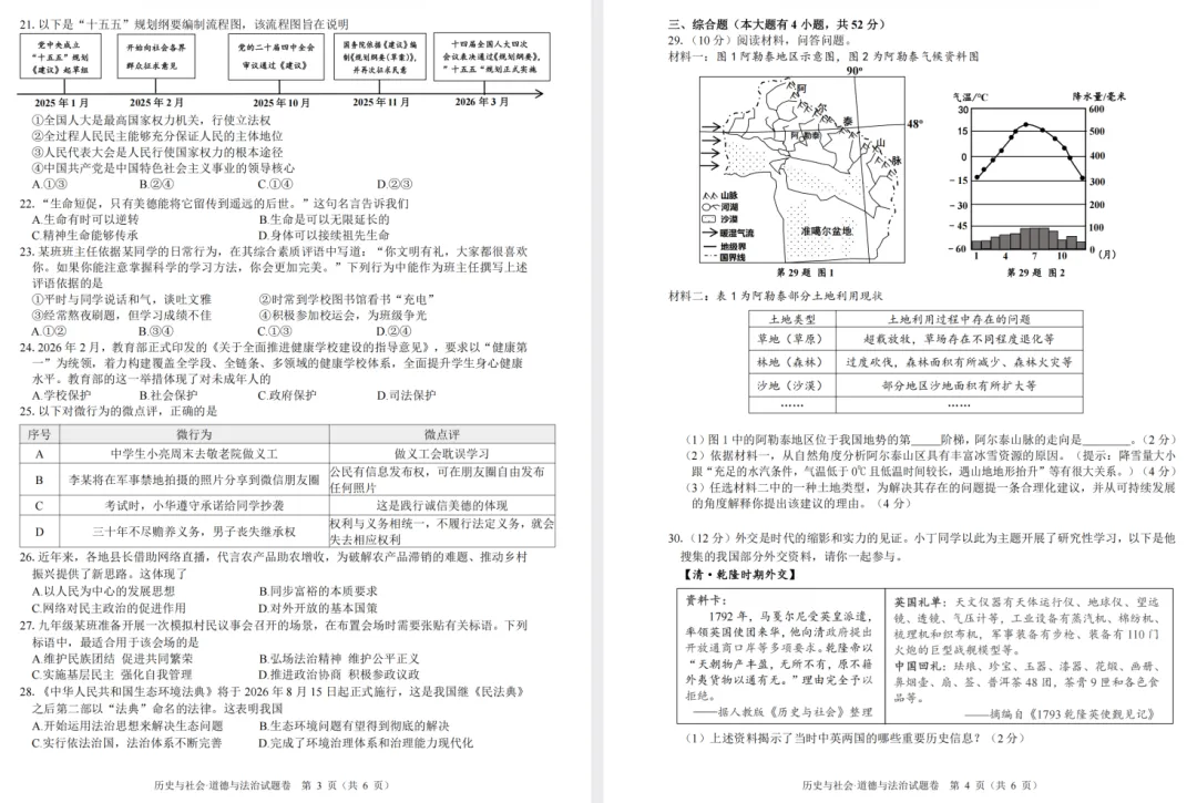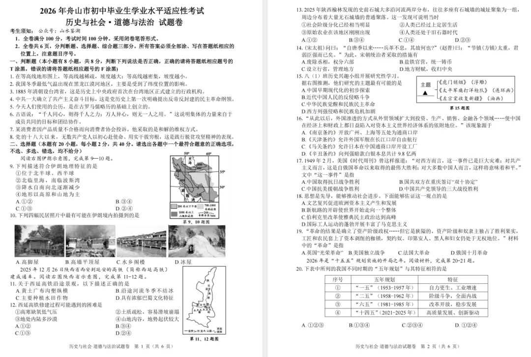 >【社会一模】2026年舟山社会一模试卷(含答案)