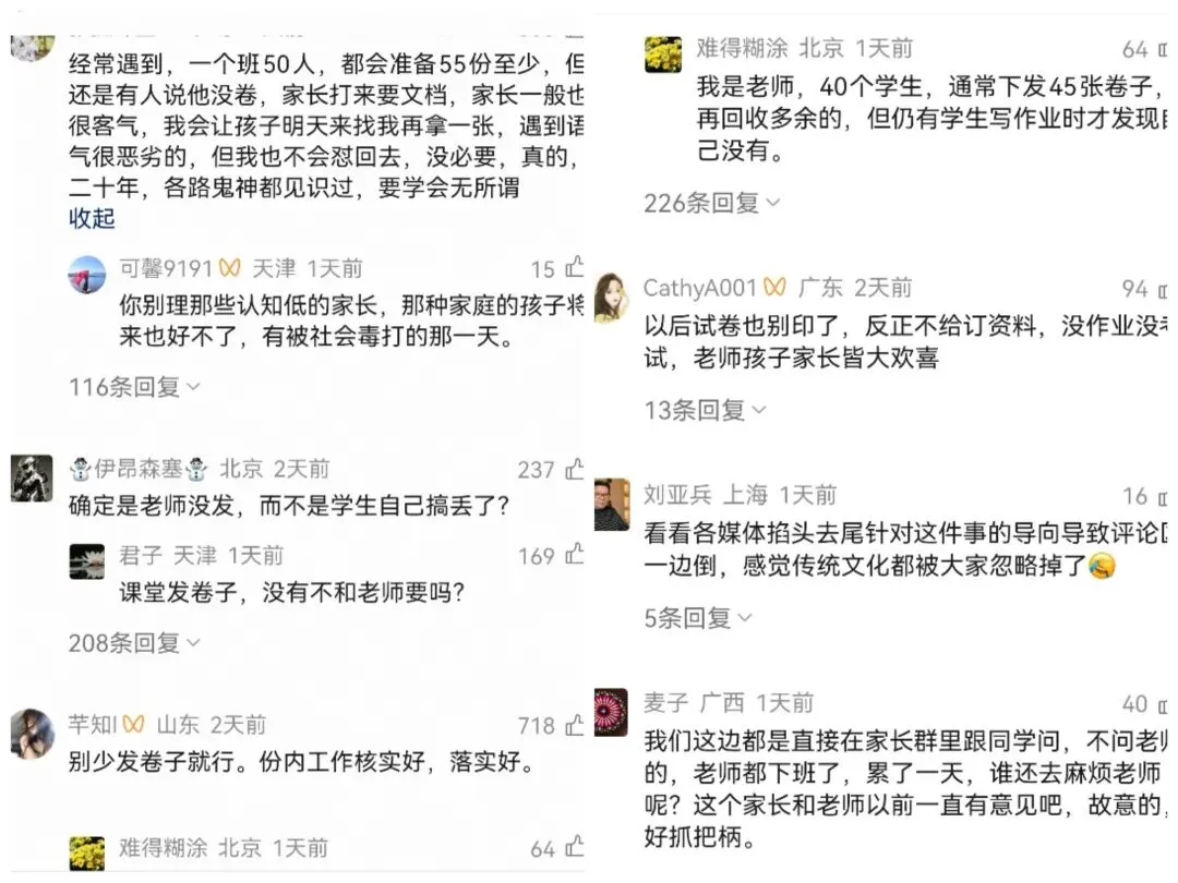 这场争吵里,最后受伤害的,其实是那个没领到试卷的孩子。家长和老师闹得不可开交,孩子夹在中间,以后还怎么面对班主任或其他老师?他会不会觉得,是自己给家长添了麻烦,以后有什么问题,再也不敢和老师说了?很多时候,人们被生活磨得疲惫不堪,一点小事就能点燃心里的火。老师可能刚被领导批评,家长可能刚加班回家,两个带着一身疲惫对话的人,一点火星就炸了。作为成年人,更该学会把情绪和工作分开,把脾气和沟通分开。老师可以拒绝家长的请求,但没必要用指责的语气;家长可以表达自己的诉求,但没必要带着情绪说话。试想一下:“互相理解,换位思考有这么难吗?和老师打电话要录音,一点不愉快就要到网上掀起轩然大波,彼此的戒备和不信任,最后伤害的是谁?”是那个每天要在学校待8个小时,要和老师朝夕相处,还要回家面对家长的焦虑的孩子。一张试卷,本不该成为家校矛盾的导火索;一次沟通,也不该变成全网对立的骂战。这件事里,没有绝对的对与错,只有成年人之间,最该学会的两个字:体谅。老师体谅家长的焦虑,家长体谅老师的辛苦;我们体谅彼此的不易,也守住自己的边界。好好说话,做一个情绪稳定的成年人。毕竟,家校所有的沟通,最终的目的,都是为了孩子,而不是争个你对我错,赢了道理,输了体面。少一点情绪的对抗,多一点好好说话的耐心,就少很多不必要的争吵。