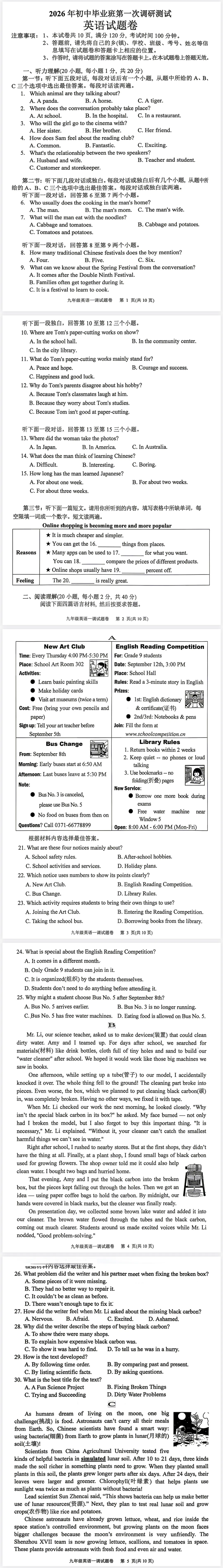 【晋升学·4月】名校模拟2026山西试卷+答案+听力