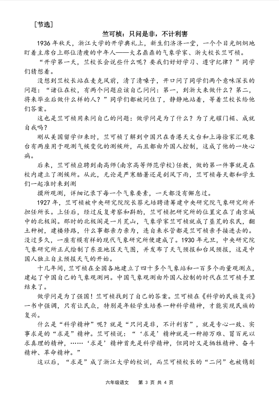 【课内阅读】六下语文1-6单元课内阅读精选(86篇)
