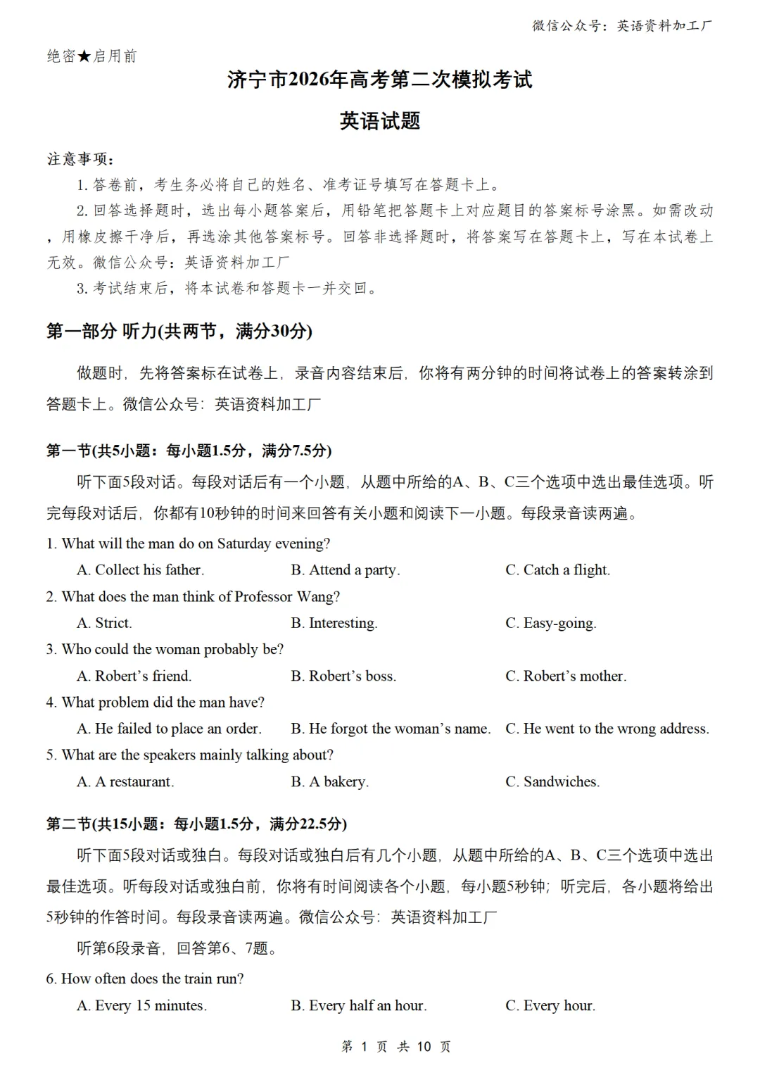 【听力】免费下载!26年3月各地高三联考/模拟考英语听力套题30套合集,含音频、答案和原文
