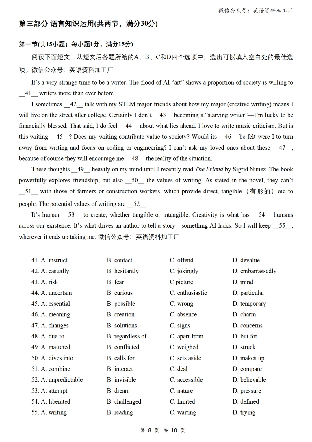 【完形填空】免费下载!26年3月各地高三联考/模拟考英语完形填空32篇合集,含答案解析