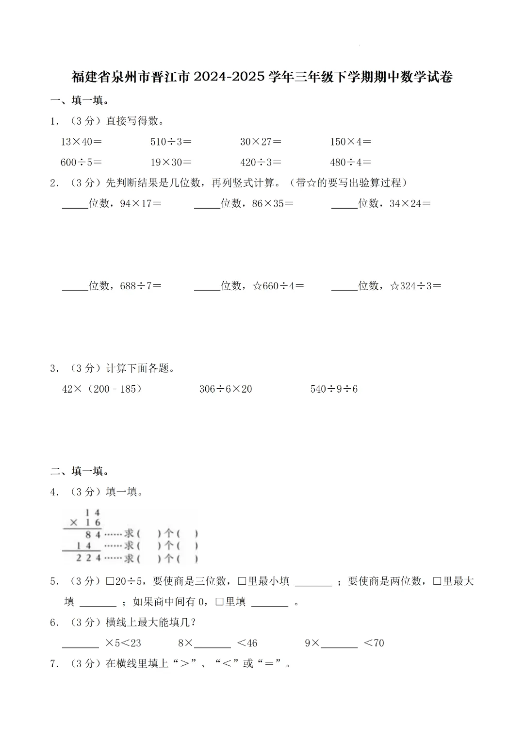 可下载!2025晋江第二实小三年级下语数期中真题卷!