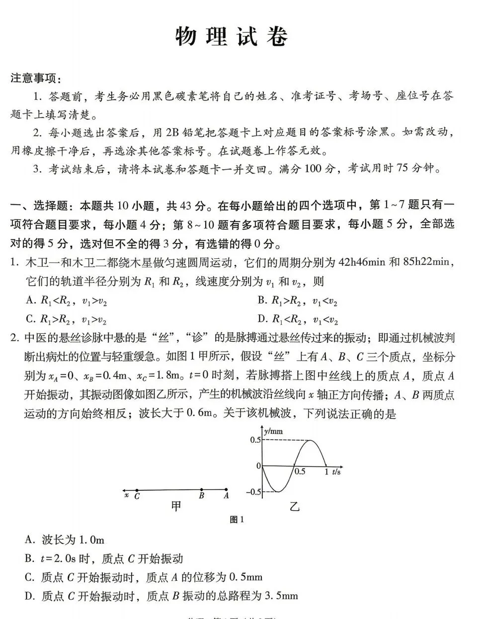 2026届西南名校联盟高三下学期4月阶段检测物理试卷及答案