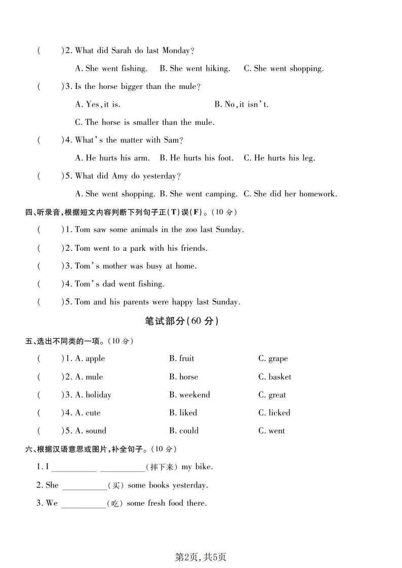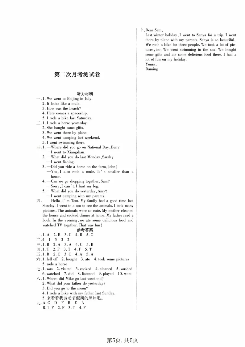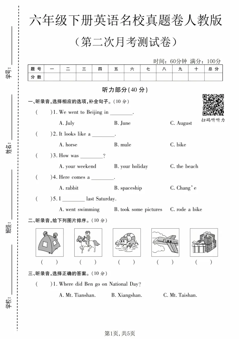 2026春六年级(下)英语第二次月考名校真题卷《人教版》完整版可打印!