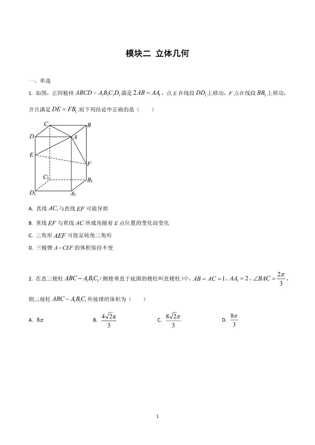 模块二 立体几何