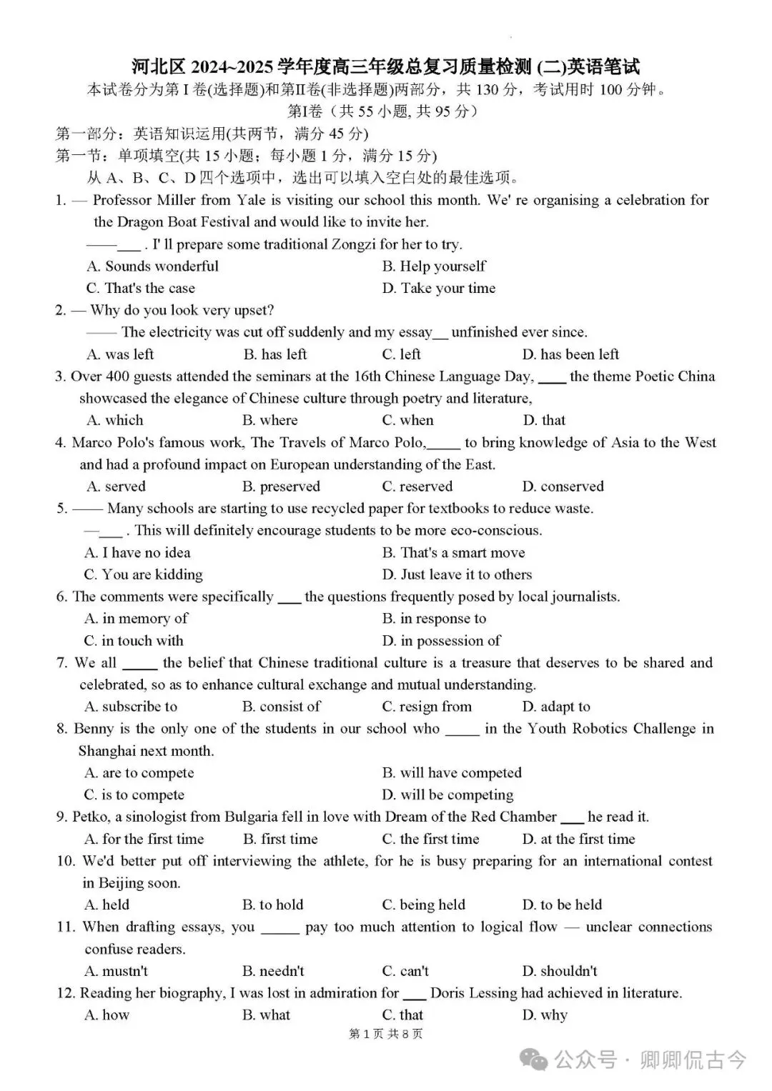 >【可下载】2025年天津河北区高三二模英语试卷(附解析)