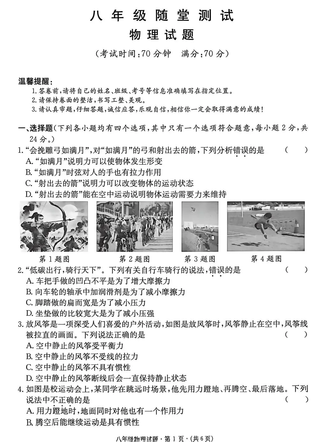 最新!2026年春初二期中考试物理真题及答案(2025-2026学年青岛26中57中)