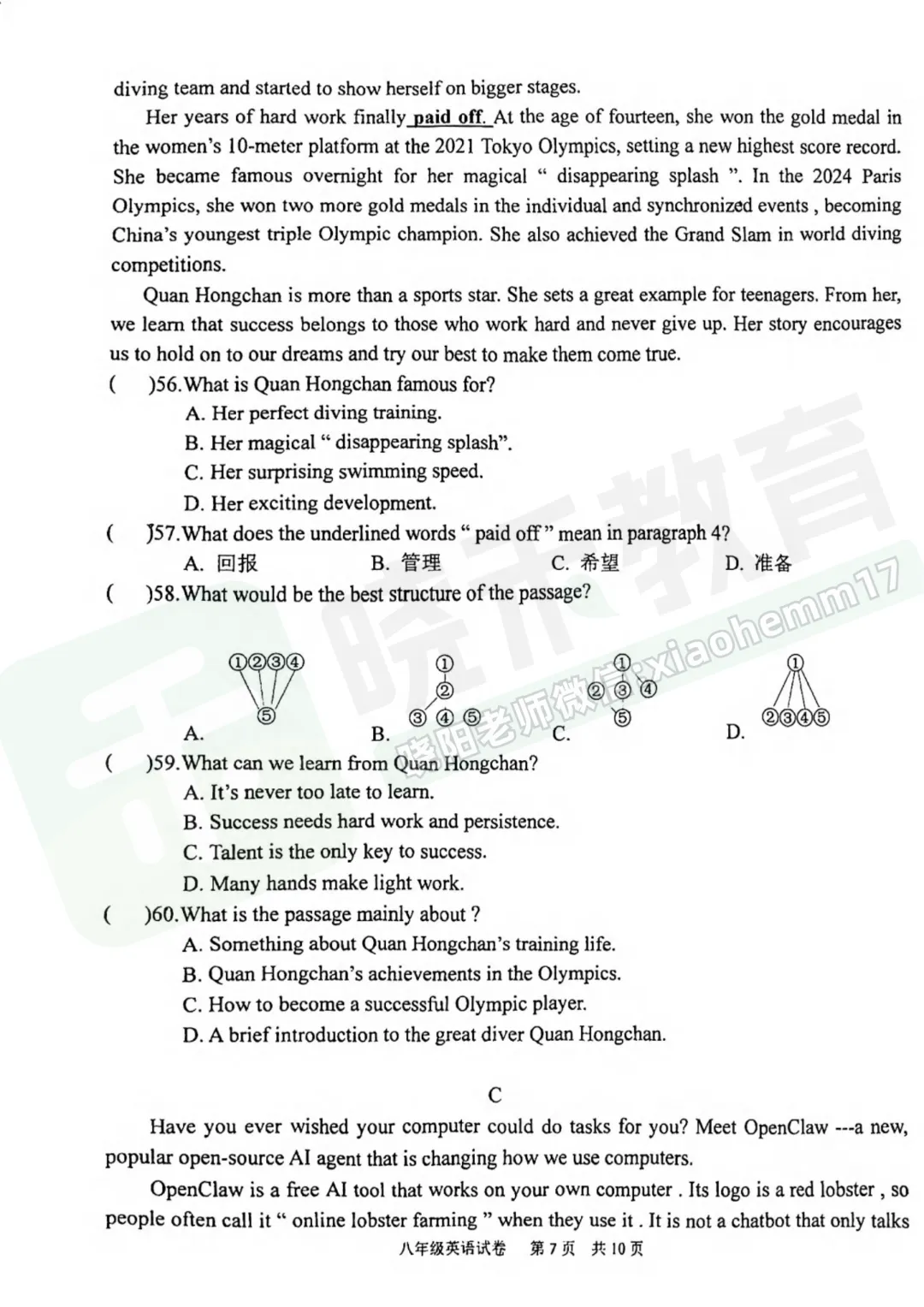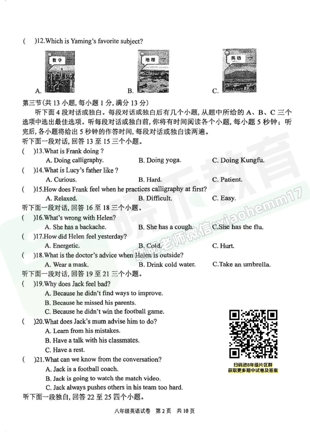 刚刚收集到【武昌区8年级英语2025-2026下学期】期中试卷,如需完整版试卷及答案,扫码加入【8年级片区交流群】,即可免费获取,更多单元测、期中末、月考试卷持续更新中!