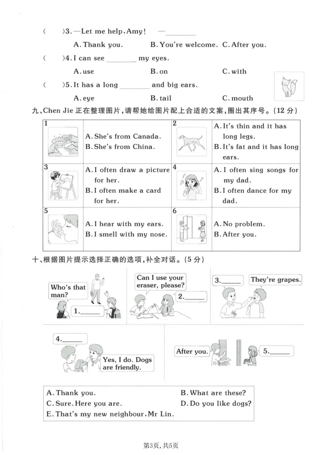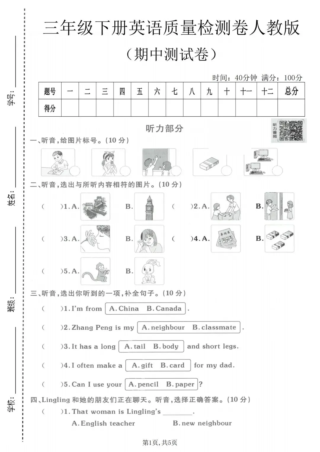三年级下册英语期中复习|人教版3套真题试卷 高清电子版