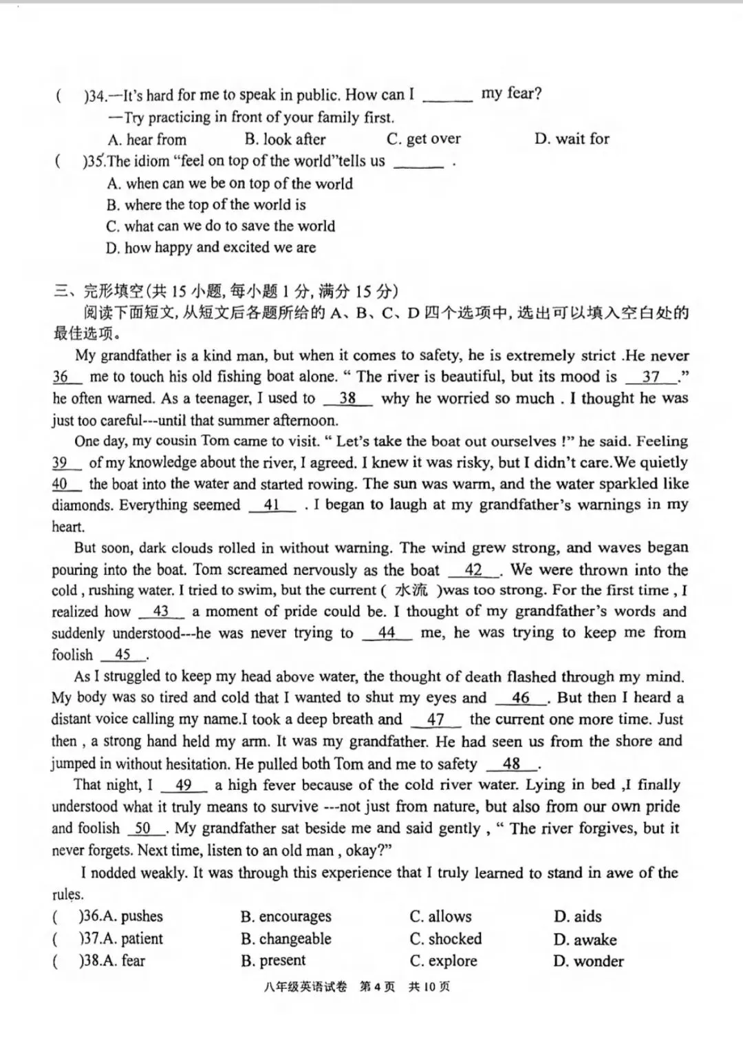 【期中试卷】2025-2026学年第二学期八年级期中评估试卷+答案