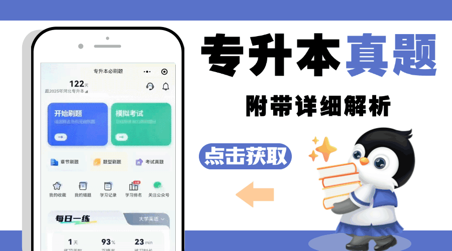 点击卡片进入专升本必刷题软件获取题库