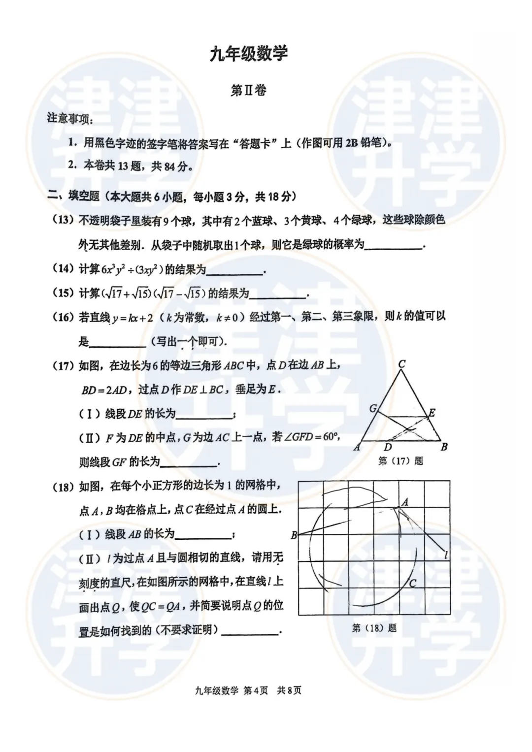 本次红桥区一模试卷结构与天津市中考数学试卷高度一致,题型、题量、分值分布、难度梯度均贴近中考要求。