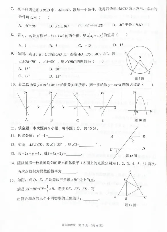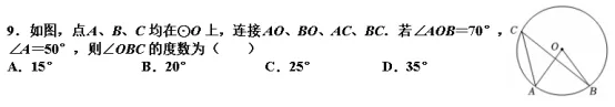 比如第9题,看到“∠AOB=70°”,就要意识到它是圆心角,然后联系圆周角定理,推出∠C等于它的一半。