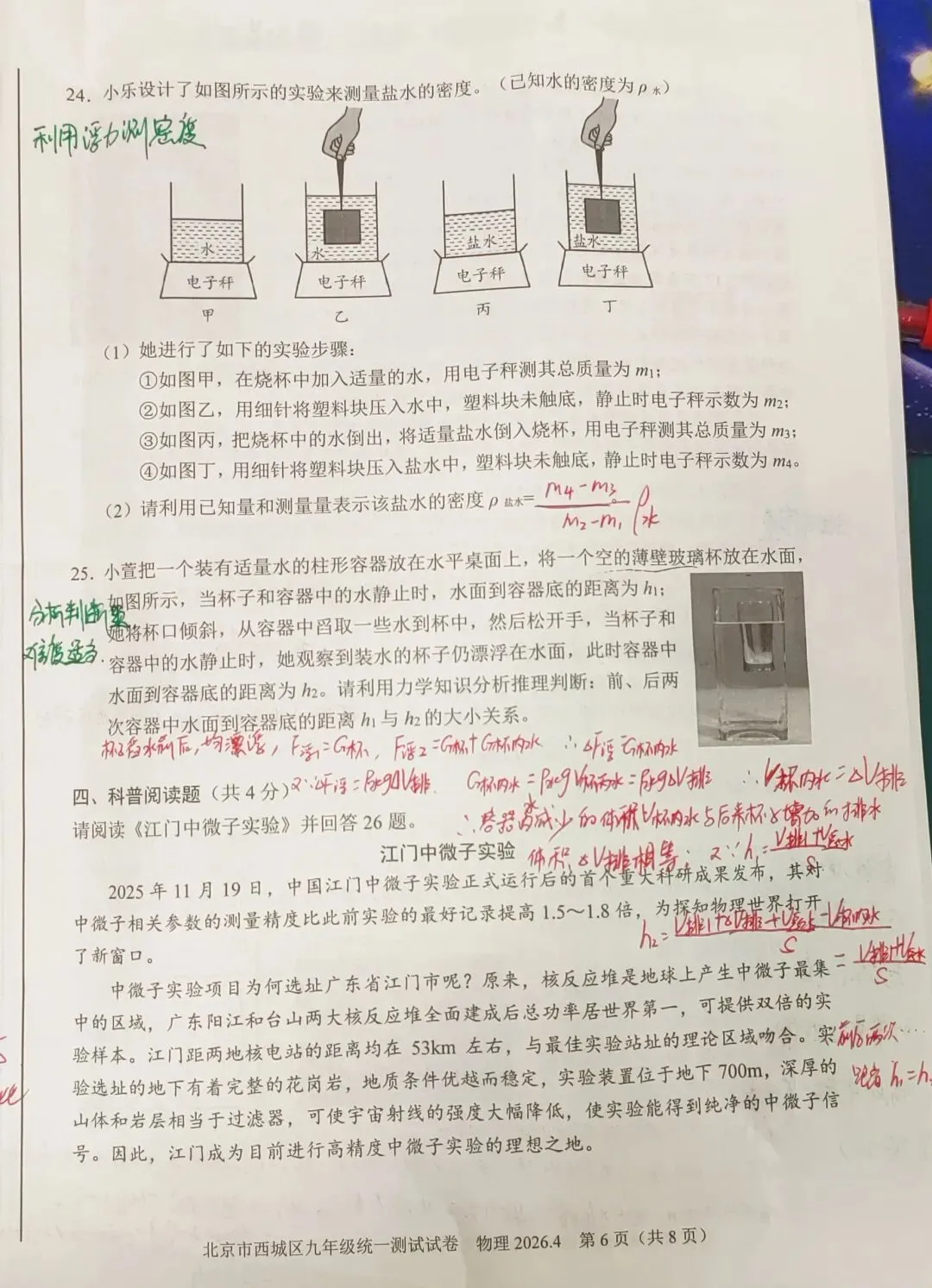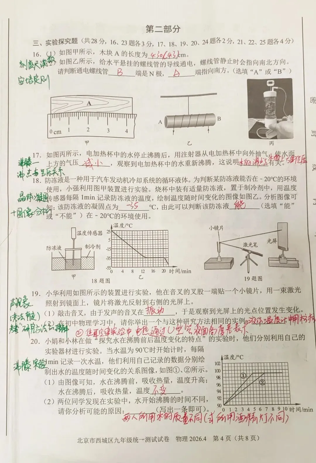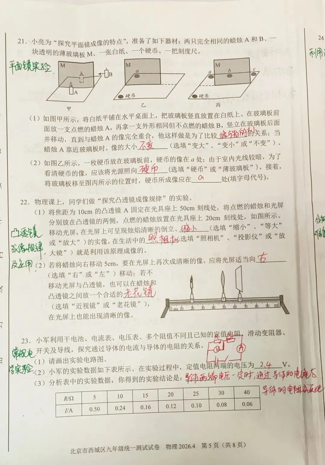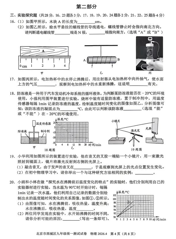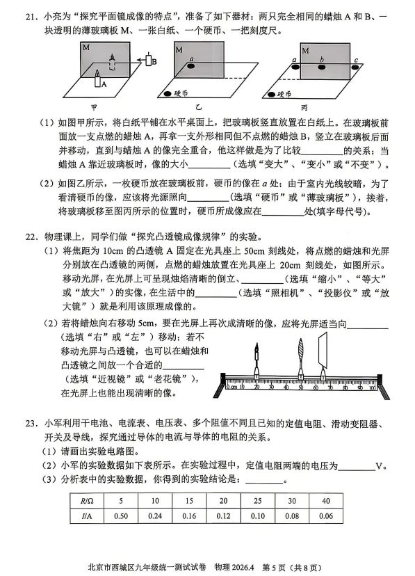 实验探究题中,大部分都是常规考察,除了基本实验重点考察,还涉物理研究方法比如T19中转换法的考察,同时浮力测密度仍为去年中考测密度的延续,今年中考考不考说不准,但确实是重点题型。关于分析判断题也属于常规考察,难度不算难。