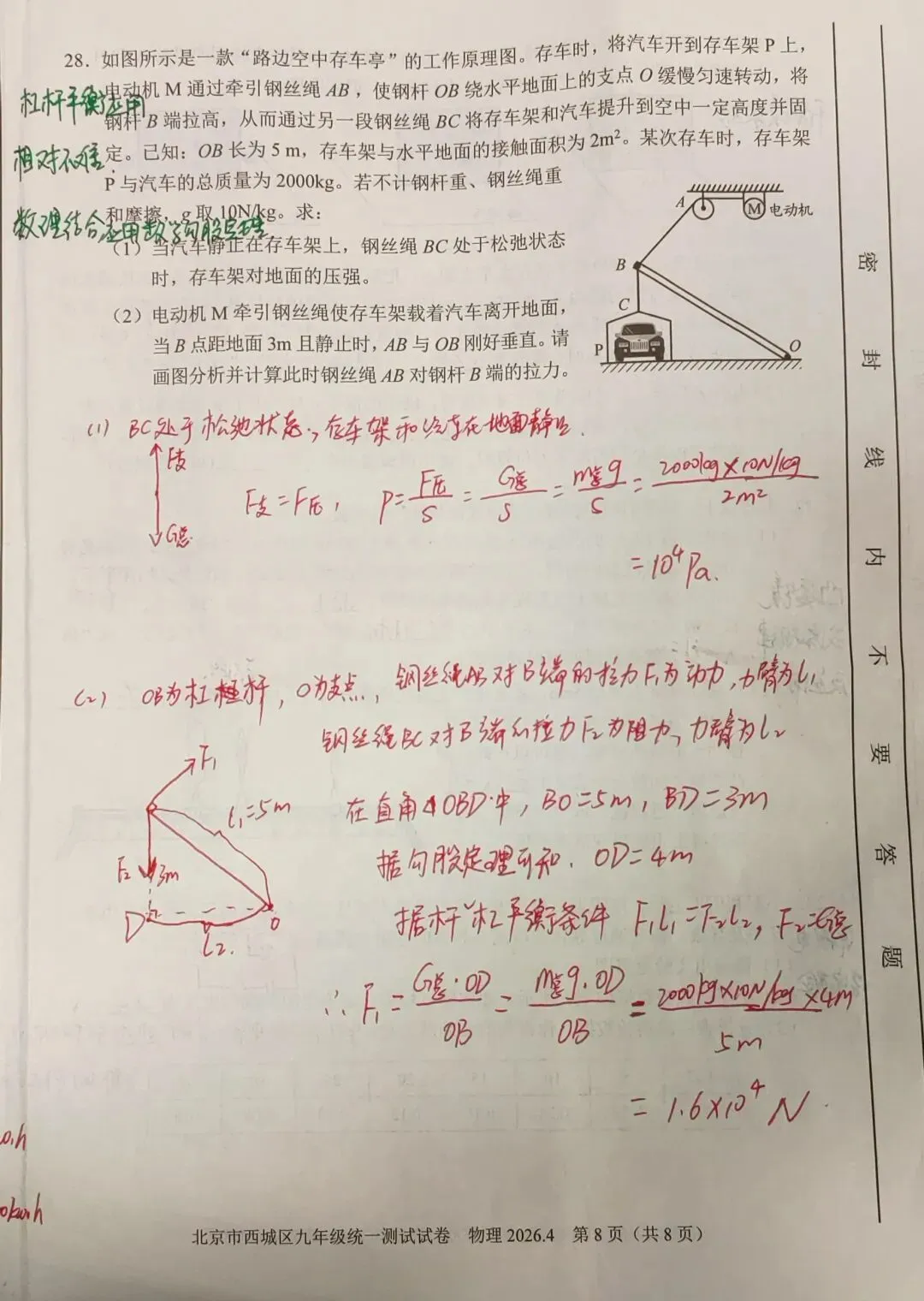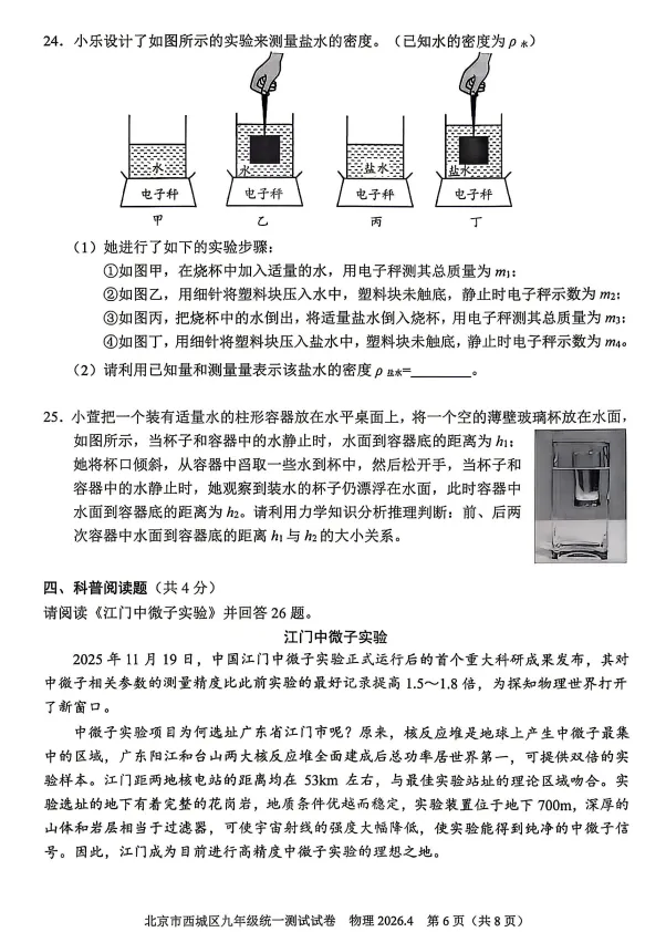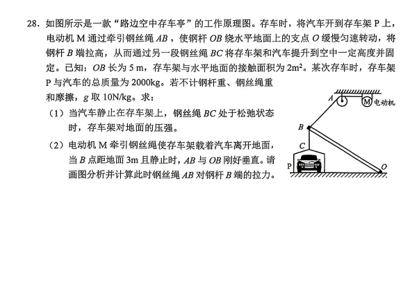 两道计算题相对简单,分别涉及电学中电能电功率与图像结合,以及力学中的杠杆平衡条件的应用,只是更体现了数学的功底(当然数学知识应用不难)。