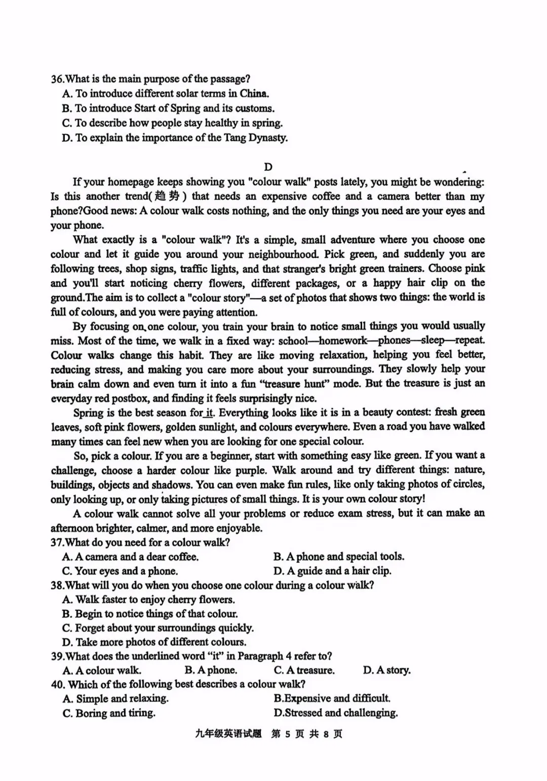 2026武珞路中学八下期中英语试卷