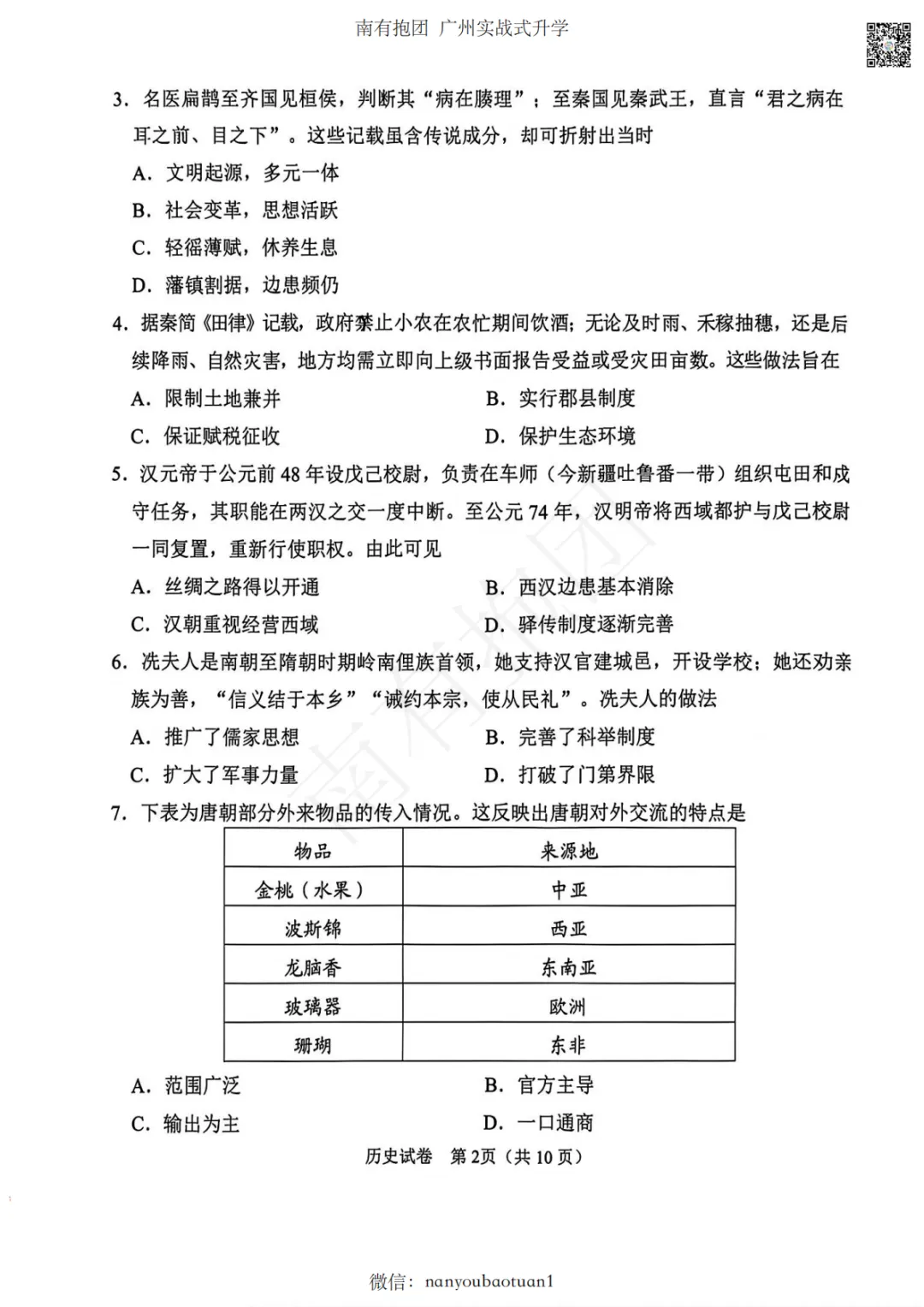 所以,多琢磨琢磨咱“家门口的历史”。这次卷子里考了广东的石峡遗址、冼夫人、还有咱们的粤语歌谣。这其实是一个挺明显的信号:出题老师希望历史对你来说,不是遥不可及的故事,而是跟你脚下这片土地有关的东西。