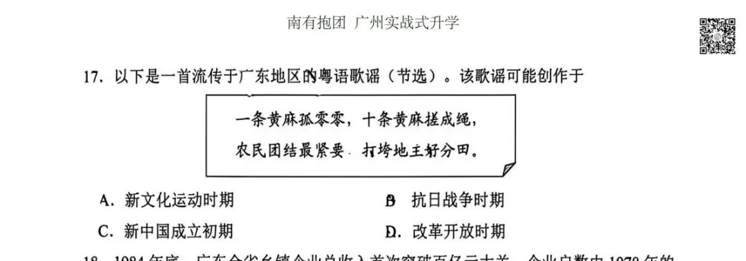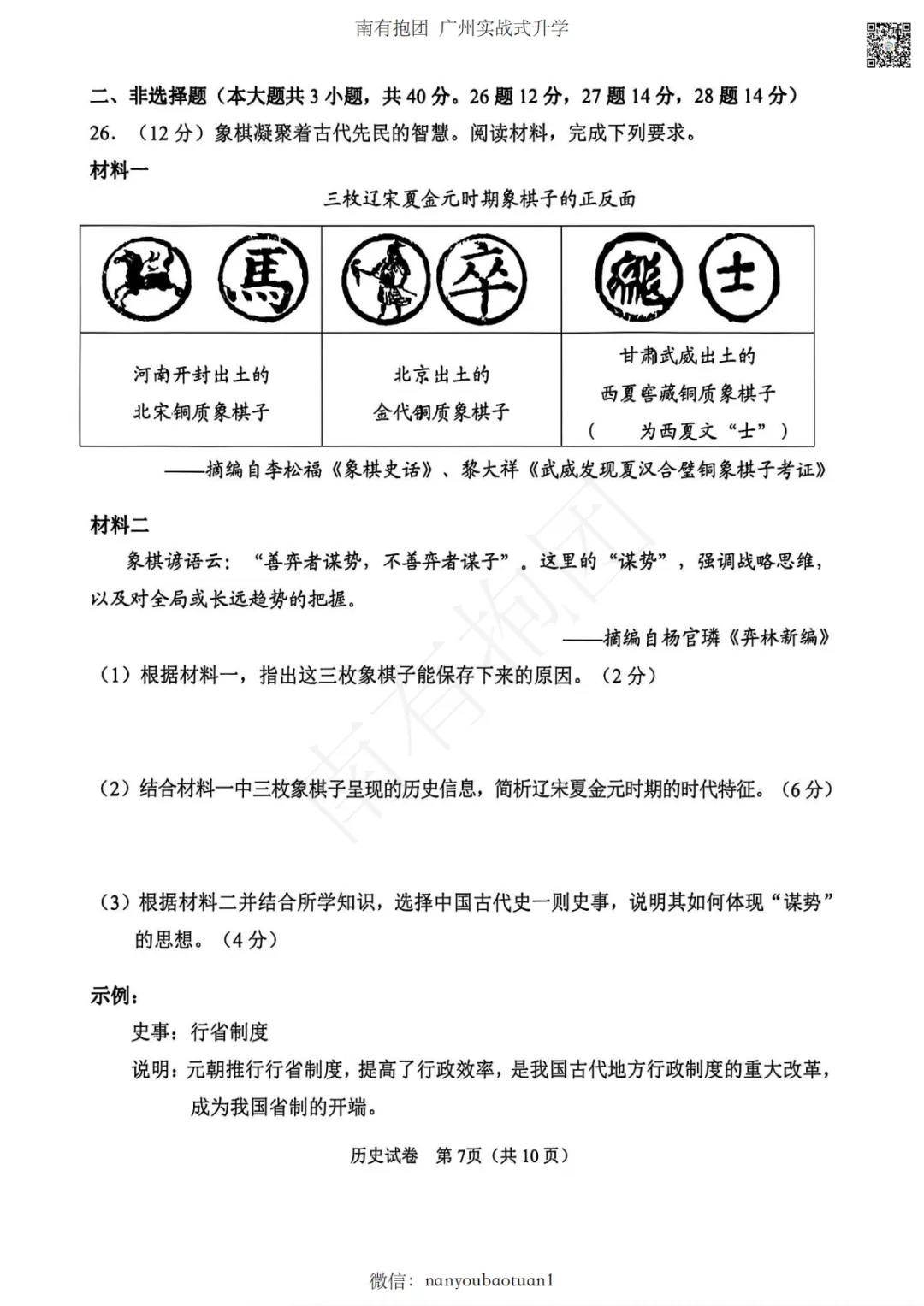 习惯从身边理解历史: 第17题粤语歌谣、第26题象棋,都印证了“历史就在身边”。备考时可以有意识地把历史知识与本地文化相联系,当你能用自己的语言讲出历史与当下的关联,才算是真正内化。