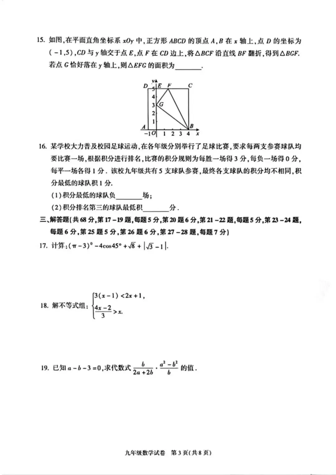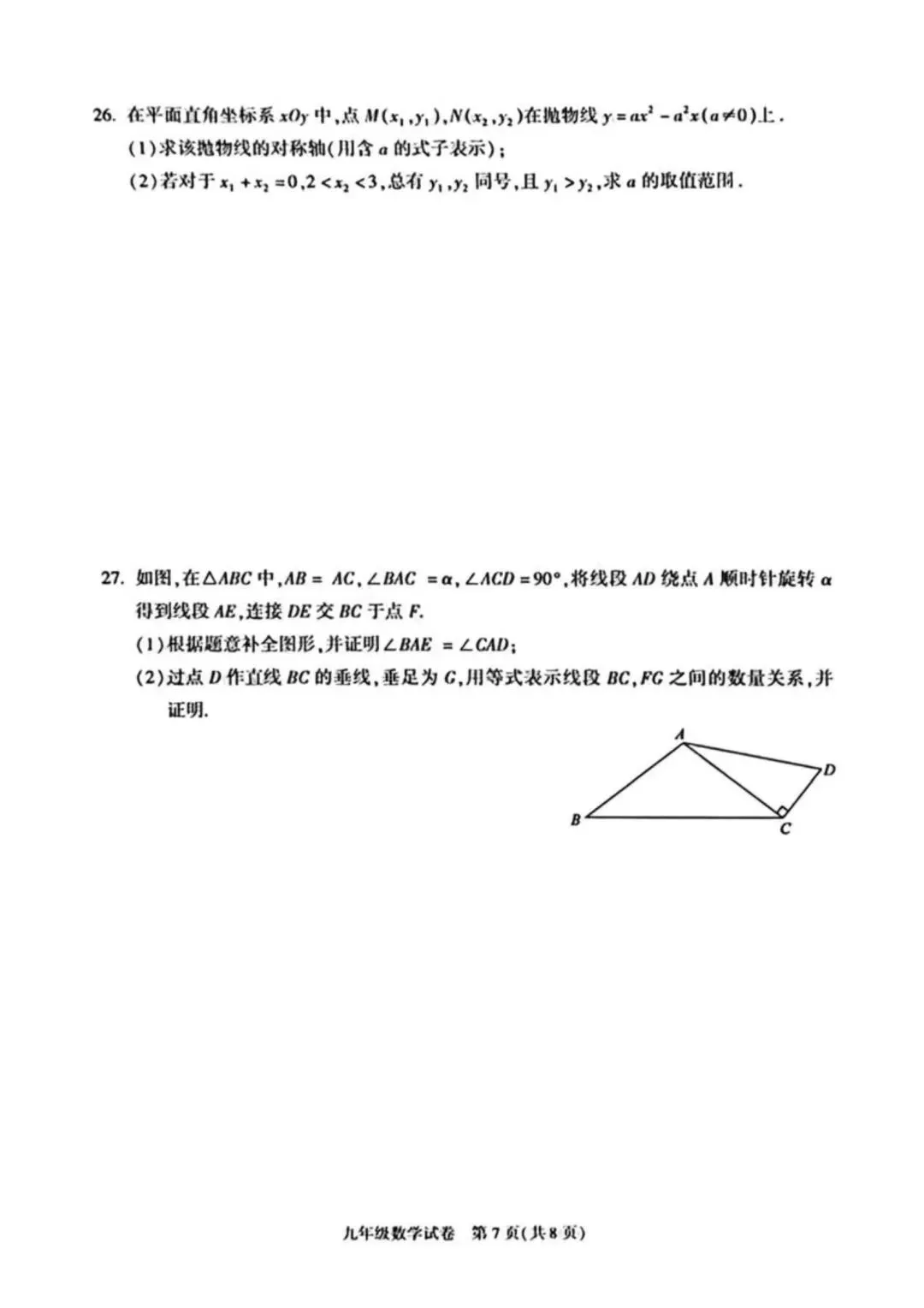 对答案!2026北京朝阳初三一模数学试卷及答案出炉