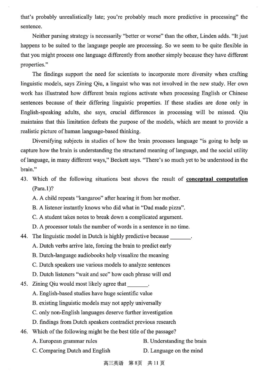 2026届浦东新区高三二模英语试卷
