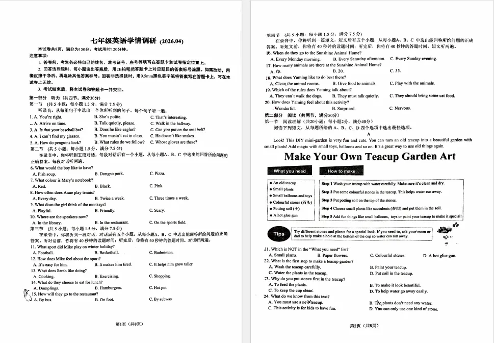 当前位置:首页>考研真题>2026年4月历下区七年级期中考试英语试卷分析