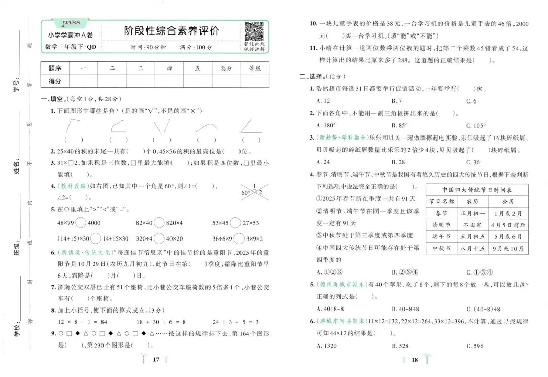 🔥「2026《PASS绿卡•小学学霸冲A卷》(3年级下)(数学)(青岛63版)」:https://pan.quark.cn/s/7d25954d220d