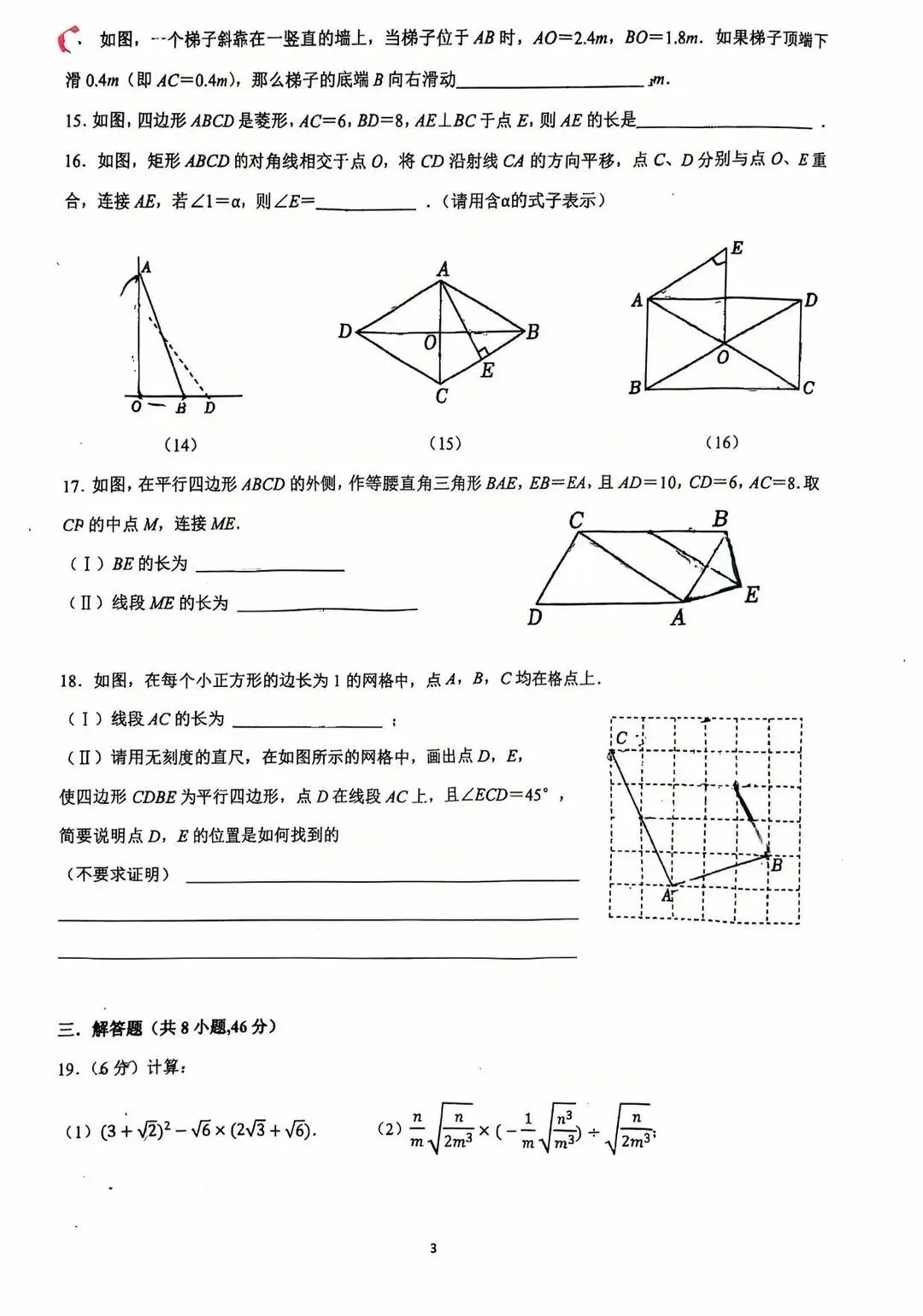 2026年天津部分区一模数学试卷及答案