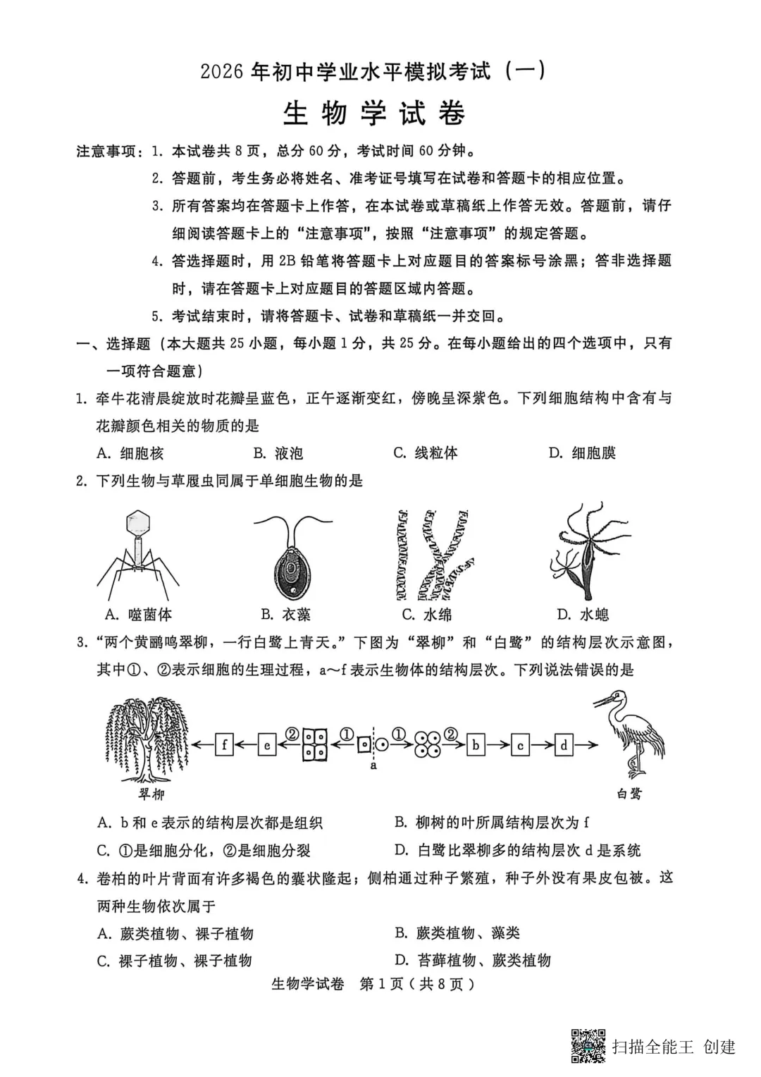 秦学教育:2026昆明西山区一模试卷和答案分享