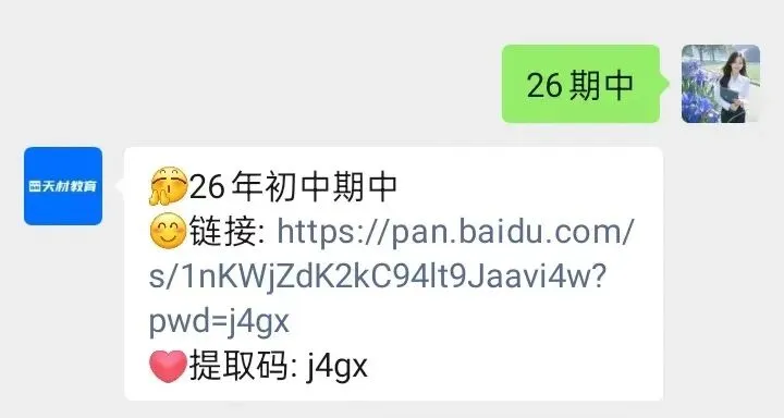 第二步:在公众号后台回复关键词“26期中”即可获取期末资料下载链接,如下图所示👇