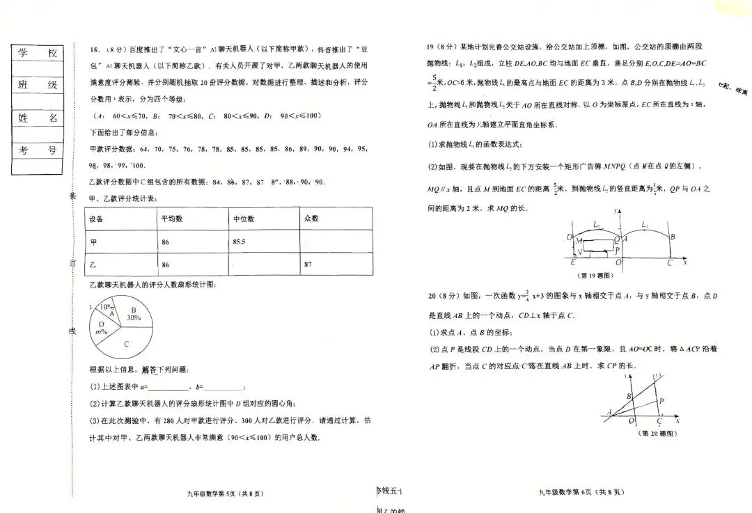 从答题角度来看,学生普遍在基础题型上表现较好,但在综合题与压轴题中暴露出明显短板。基础题部分,学生对科学记数法、整式运算、分式化简等知识点掌握较为扎实,但在几何图形性质应用与概率问题上,部分学生存在审题不清、概念混淆的问题,导致基础分丢失。中档解答题中,方程与不等式的应用、统计图表分析等题型,学生的解题步骤规范性不足,逻辑表达不够清晰,影响得分。压轴题部分,二次函数的平移与几何综合问题,多数学生无法灵活运用数形结合、分类讨论思想,对图形变换后的性质分析不到位,难以突破解题关键。整体来看,学生在基础运算与单一知识点应用上较为熟练,但在知识综合运用、解题方法迁移与数学思想方法的掌握上仍有较大提升空间,后续教学需加强专题训练,强化解题规范,提升学生的综合解题能力。