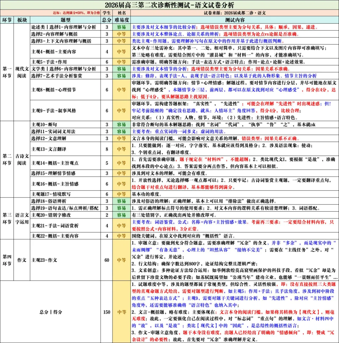 ✅试卷分析、学习情况反馈