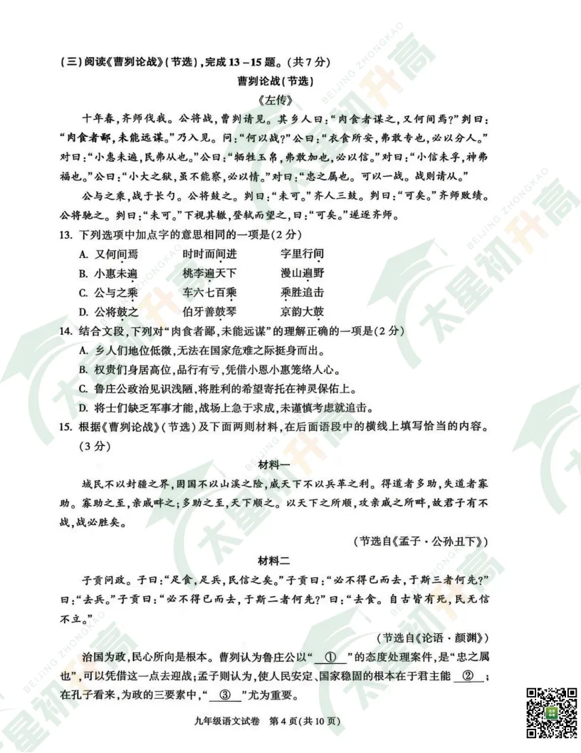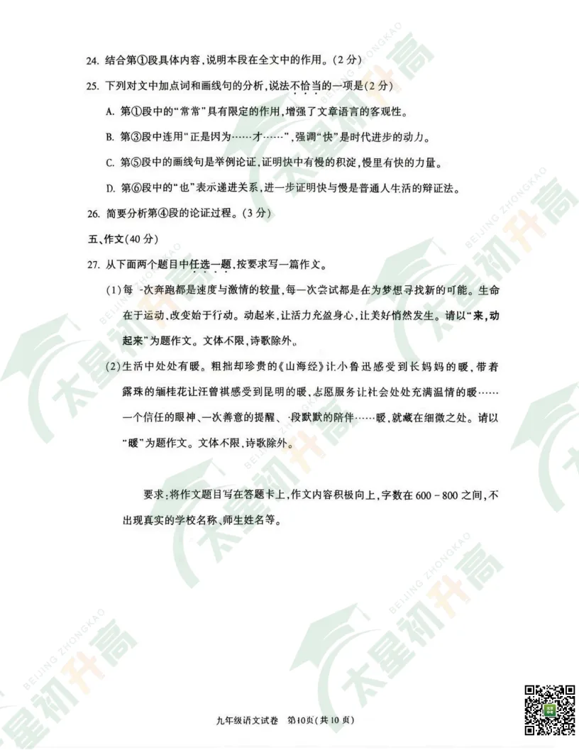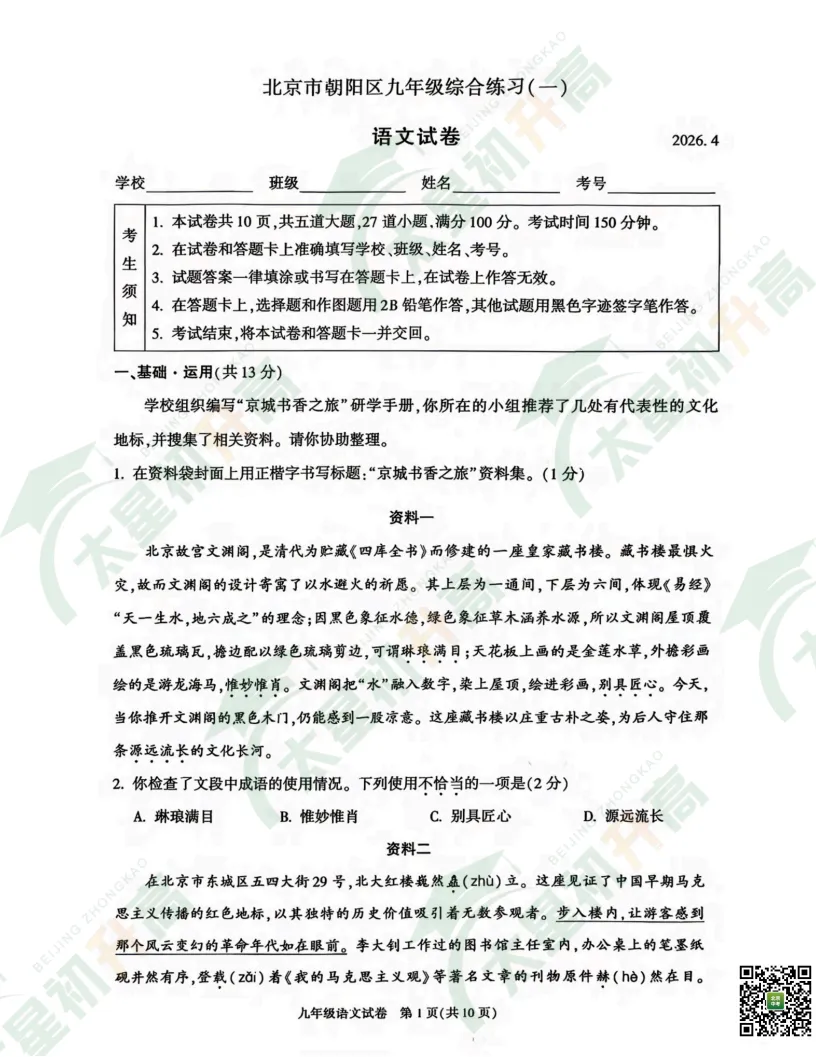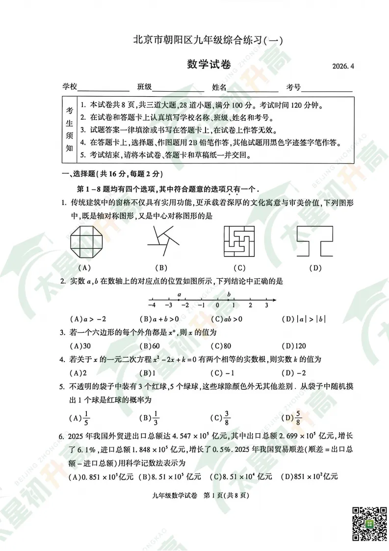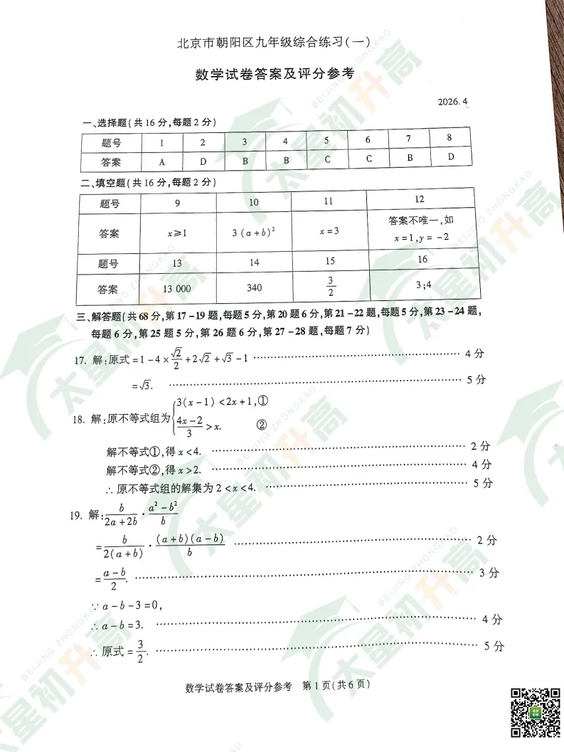 2026朝阳、丰台初三一模语文、数学试卷答案来了!太星初升高整理出来了,分享给大家(文中附试卷打包下载入口)
