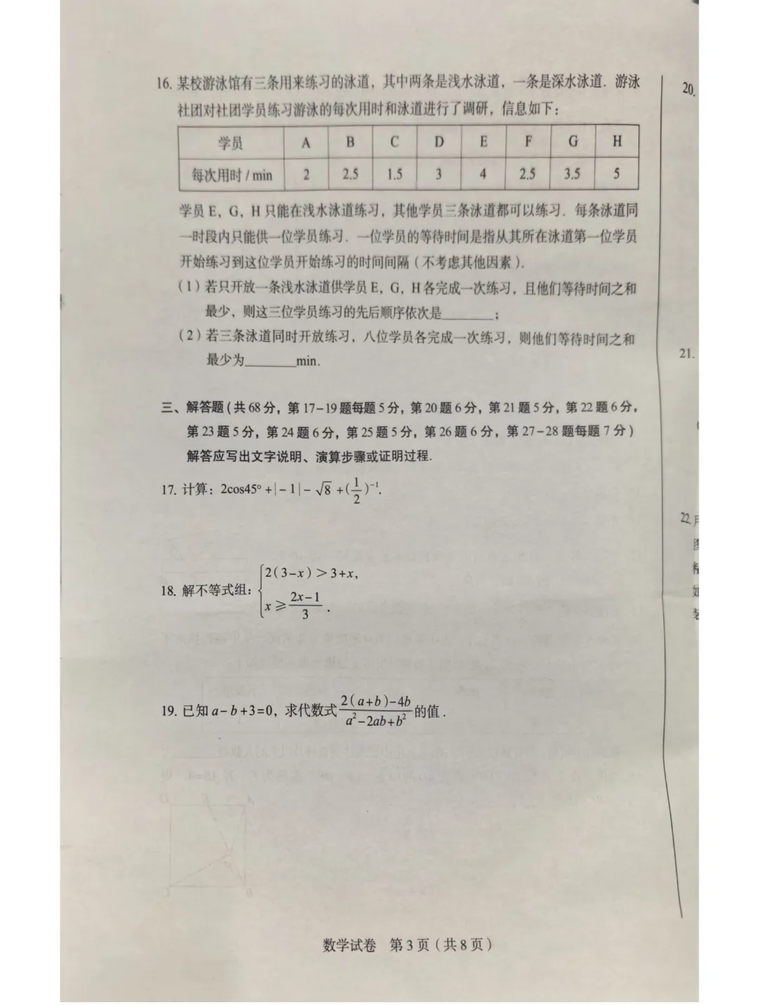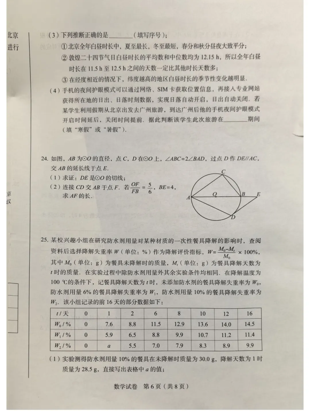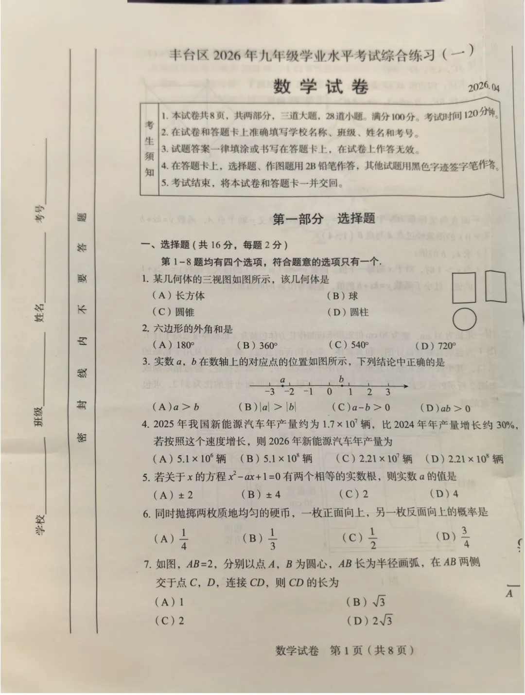 2026初三一模试卷&答案