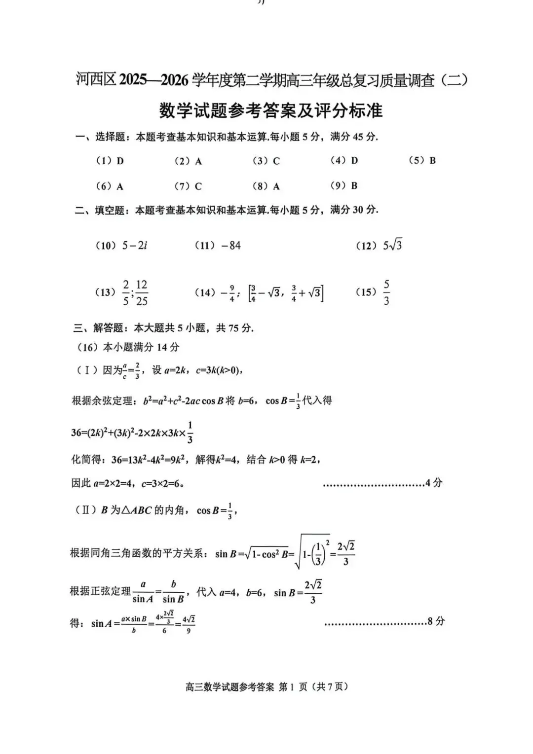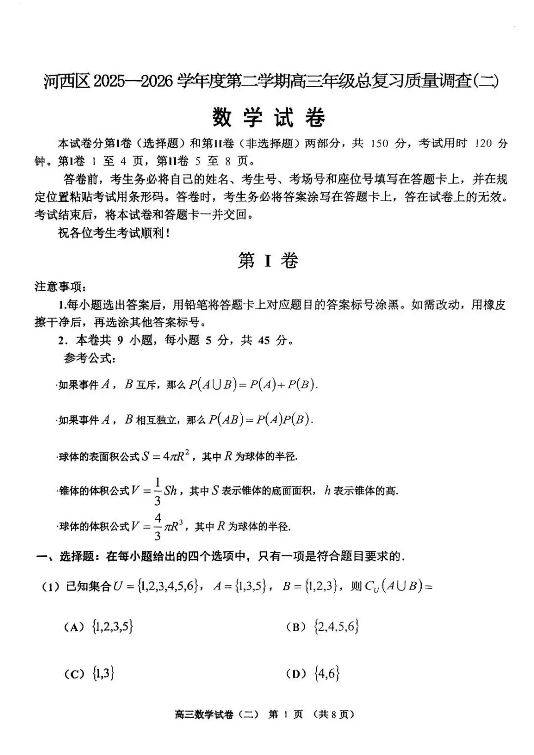 >2026天津河西区二模试卷及答案