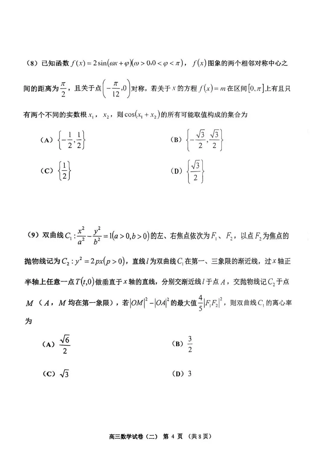 成都26届高三三诊【数学/语文】试卷+答案分享