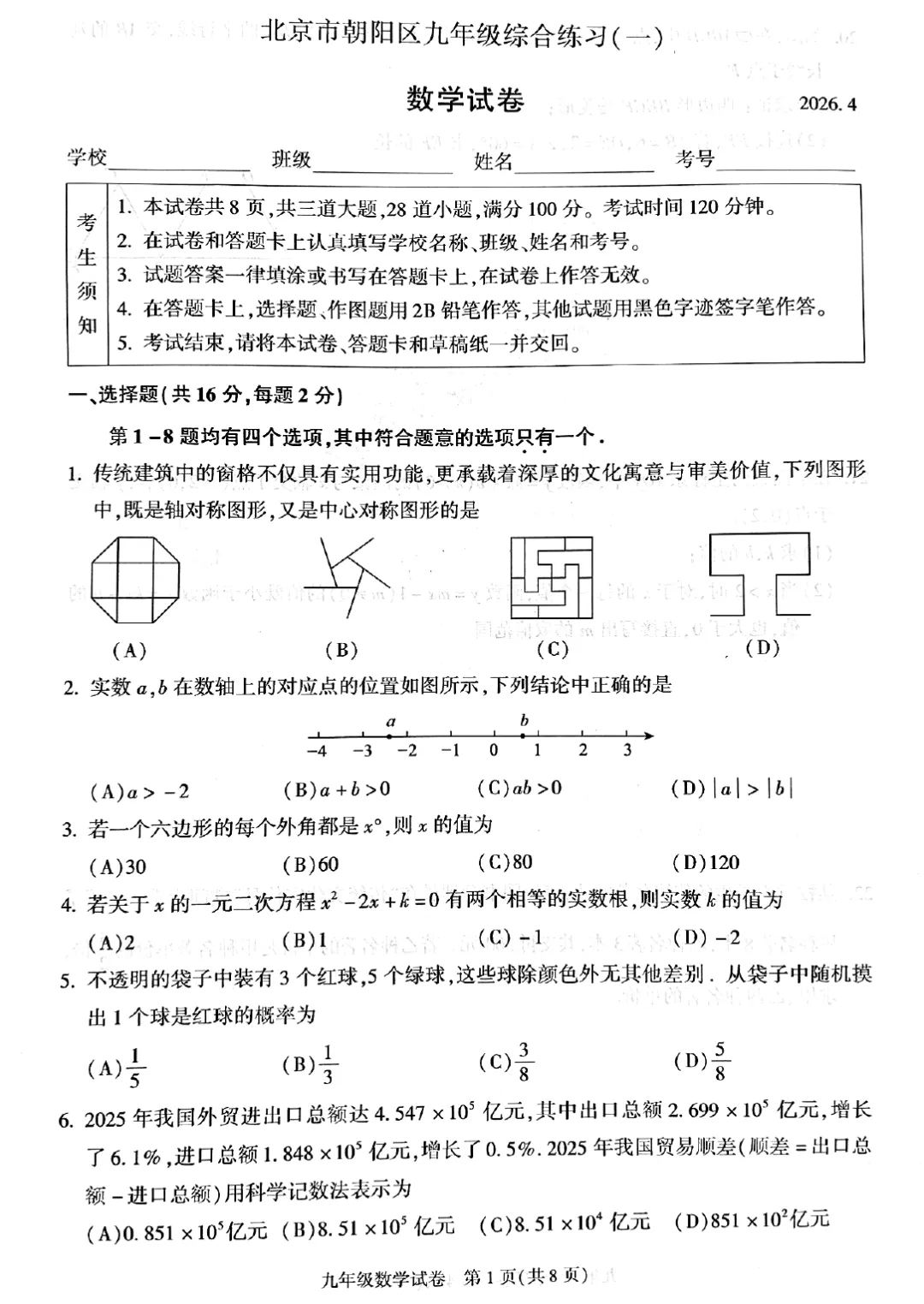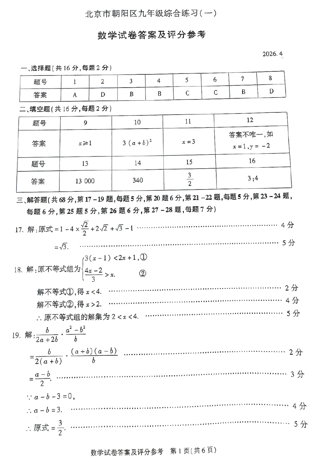 朝阳官方给的第26题(代综)的答案有误,大家在使用的过程中稍微注意一下.以下为凑字数专用