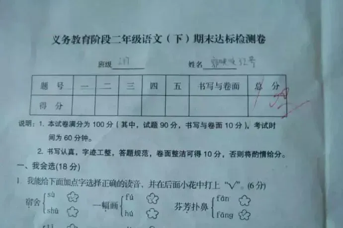 如果试卷上没有印制得分框,这一道杠就会更加必要。