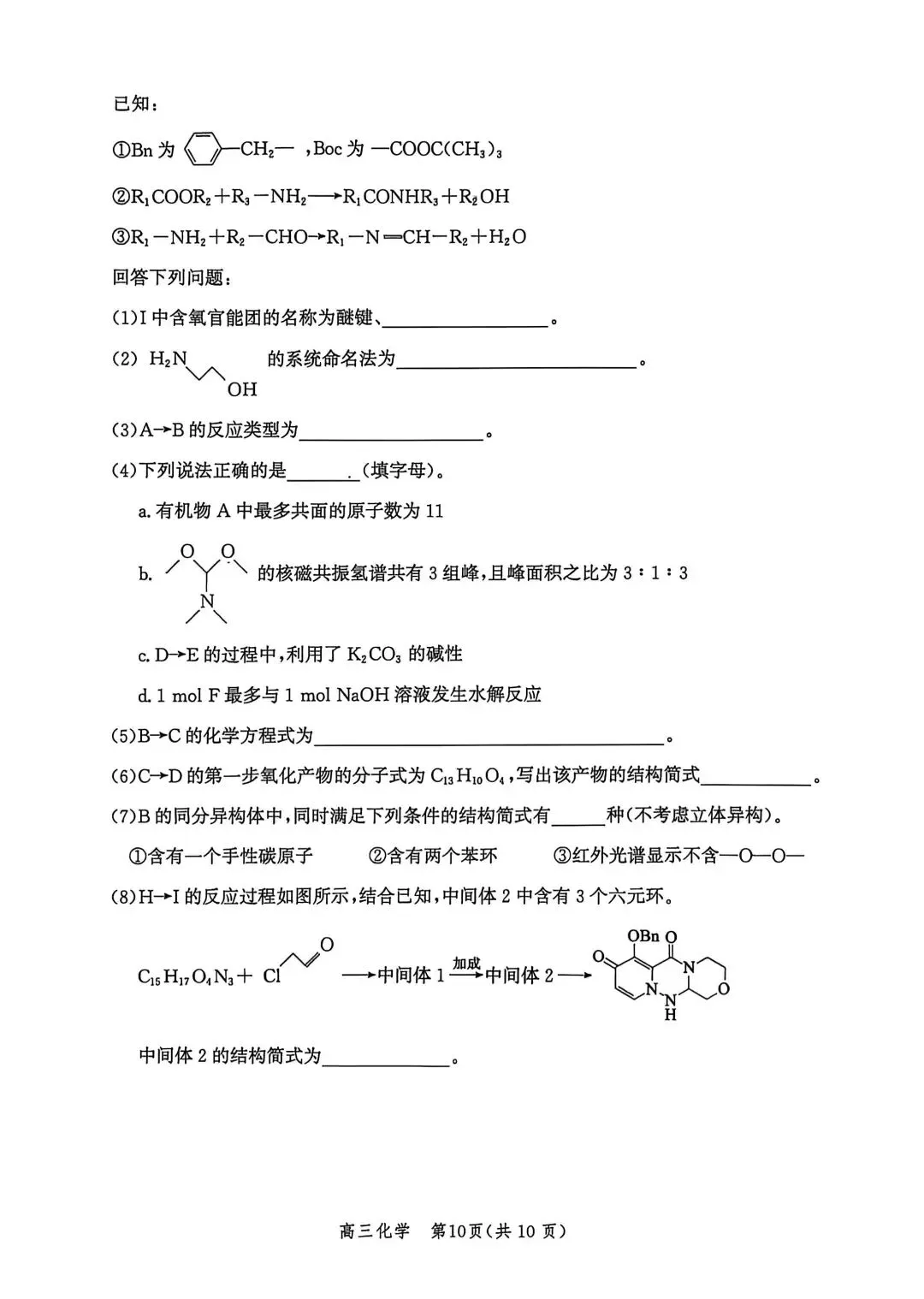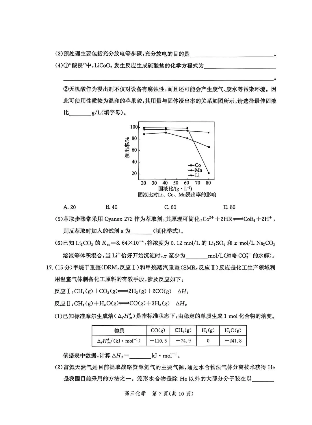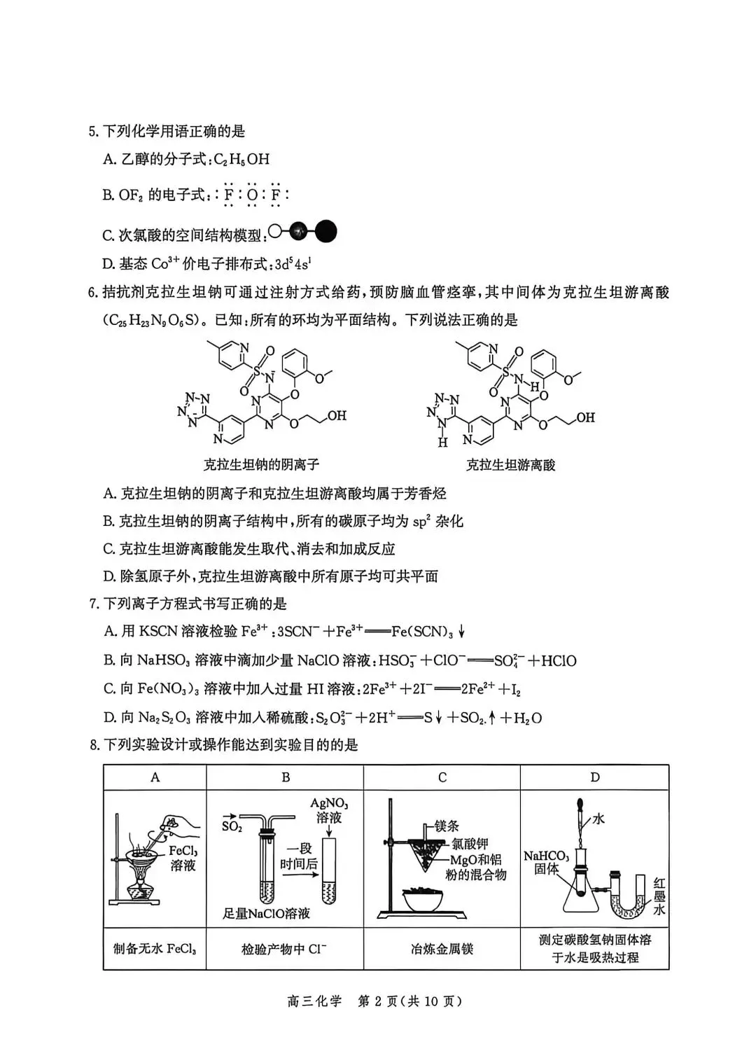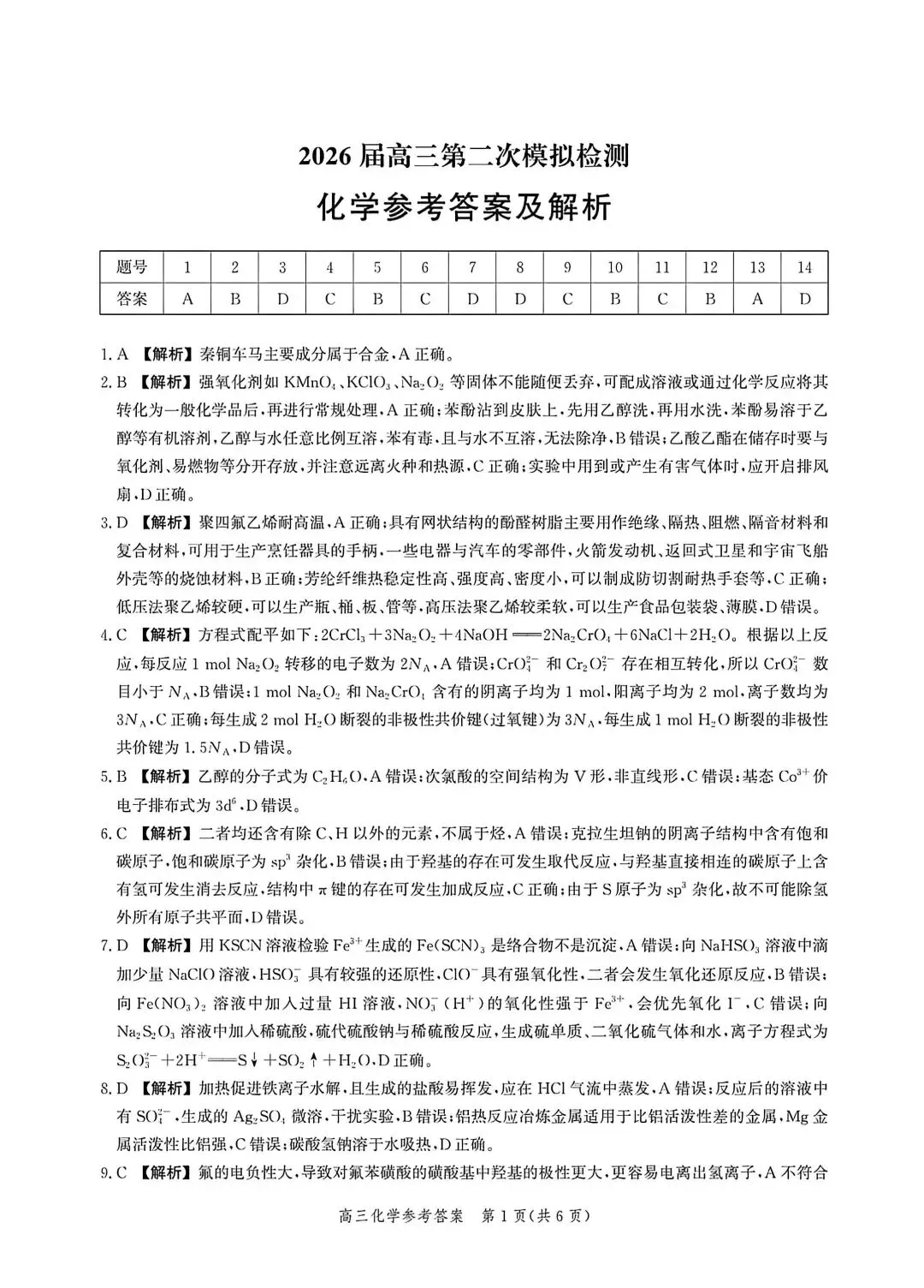 >河北邯郸2026高三二模化学试卷及答案