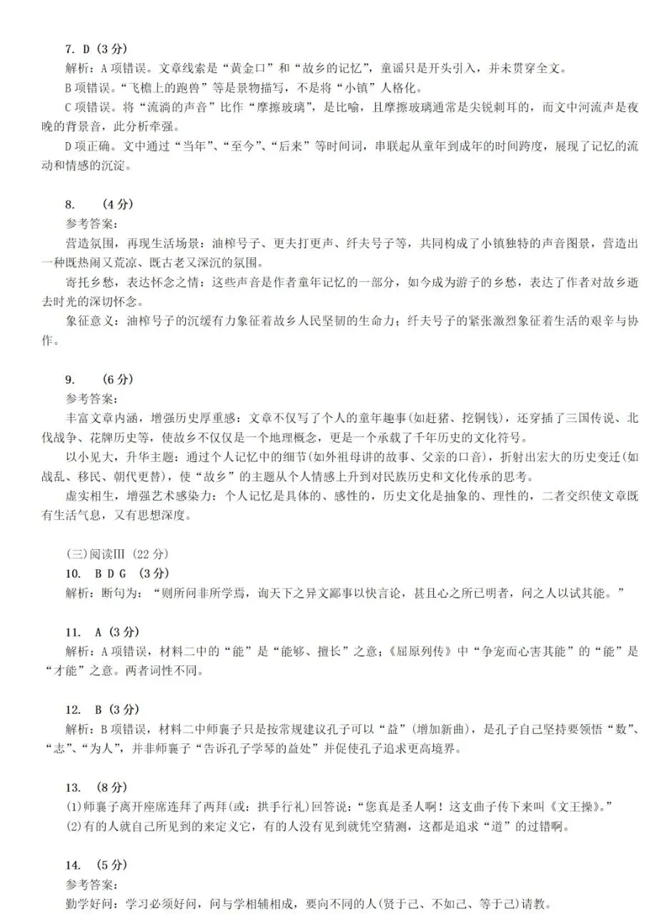 9.本文在“个人记忆”与“历史文化”之间穿梭行文。请结合文本分析这种写法的艺术效果。(6分)